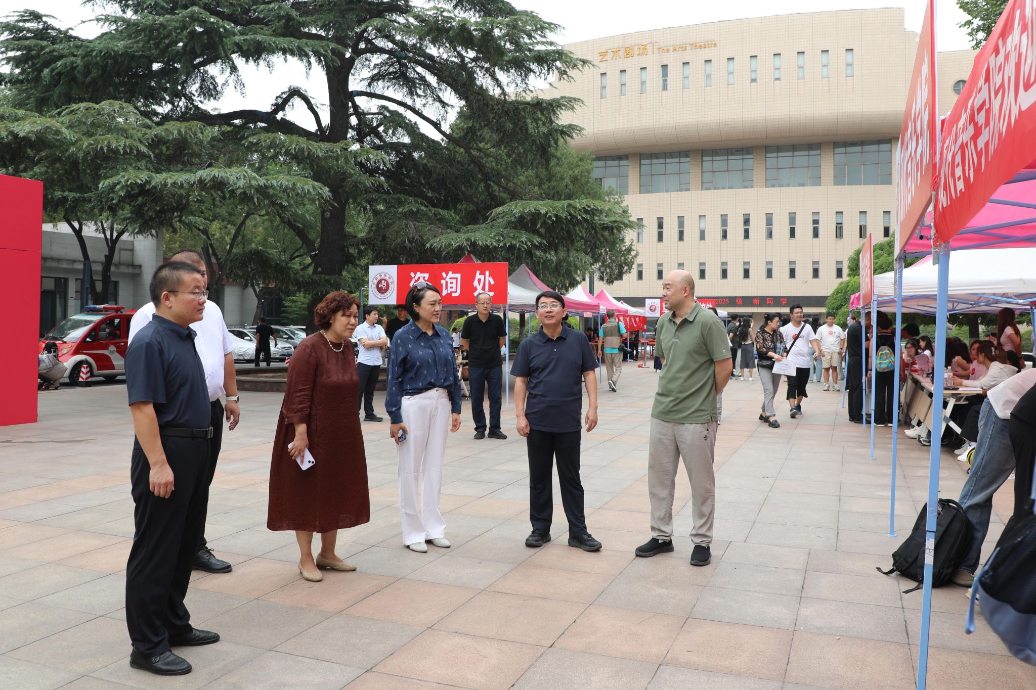 秋光潋滟,艺苑生辉。9月12日,山东艺术学院迎来2800余名2025级新同学,长清、文东两校区校园内处处洋溢着蓬勃的青春气息。学校党委书记徐梅,党委副书记杨西国,党委委员、副院长苏茂兴,副院长彭丽,党委委员孔亮、孔宪坤分别来到长清校区、文东校区迎新现场,与前来报到的新生及家人亲切交流,慰问在迎新一线的工作人员和志愿者。