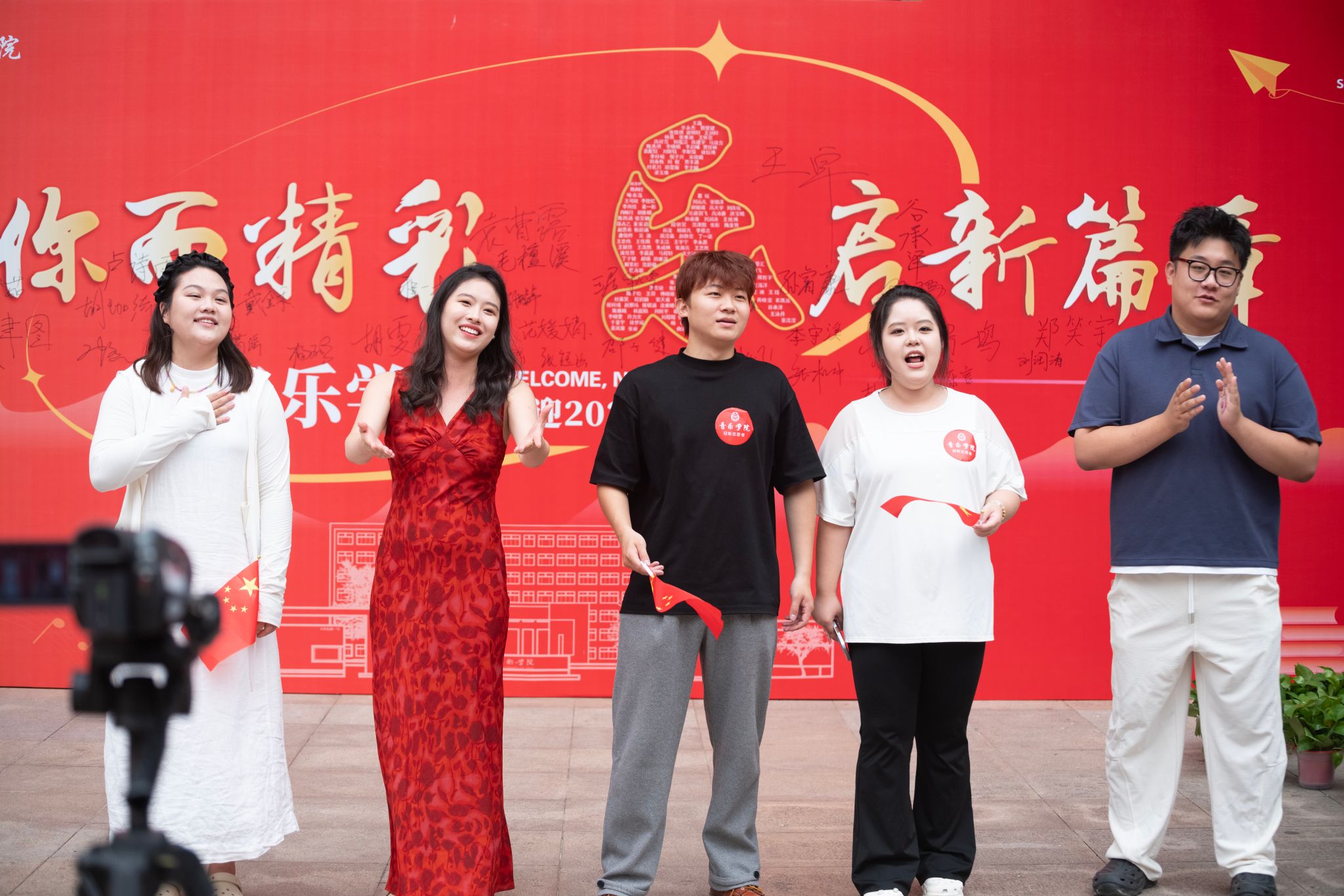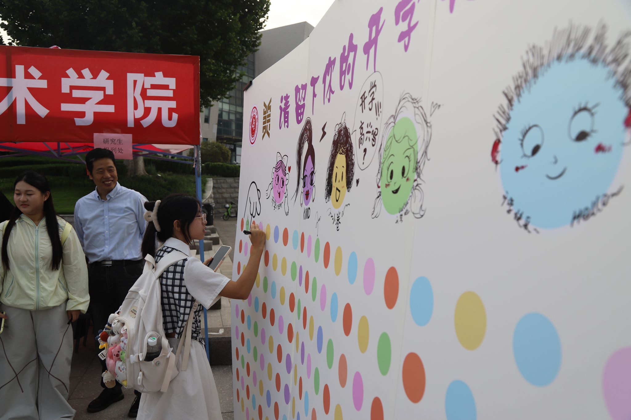 相关职能部门与各二级学院齐心协力,发挥专业优势,打造一系列富有创意的迎新场景。校团委精心设置了“未来寄语”许愿瓶,新生们纷纷写下大学愿望,开启对未来的美好憧憬;学生处推出了趣味十足的“易问易答”红包墙抽奖活动,在互动中帮助新生快速熟悉校园,寓教于乐。音乐学院和现代音乐学院分别献上“烽火薪传,筑梦新程”红色主题快闪活动与单簧管、双键盘乐队现场表演,点燃了迎新现场气氛;美术学院的自画像签到区,执笔绘像定格青春印记;戏剧学院签名墙满载期许,激发对未来的无限向往;设计学院的一拍打卡装置,以创意方式开启崭新的大学旅程;艺术管理学院以彩色拍照打卡板与气球装饰打造出色彩斑斓的打卡点,邀新生共拼彩色的艺术梦想;舞蹈学院开展“舞艺挑战”,引领大家感受肢体表达的快乐;戏曲与曲艺学院设置了戏装扮相打卡区,水袖轻扬,长绸飞舞的精彩表演,展现国粹的魅力;传媒学院设置纸飞机寄语墙书写憧憬,以轻盈纸飞机承载青春理想;城市艺术与创意学院发放学院成立25周年纪念毛毡包,实用且心意满满;电影学院不仅送上欢迎花束,更用镜头记录下萌新们报到时的珍贵影像;书法学院准备了手写祝福的“幸运星”,笔墨之间承载美好期许;国际艺术交流学院打卡板前绽放着青春的笑脸,此刻,家人相伴、同窗初遇,许多动人时刻在此定格。