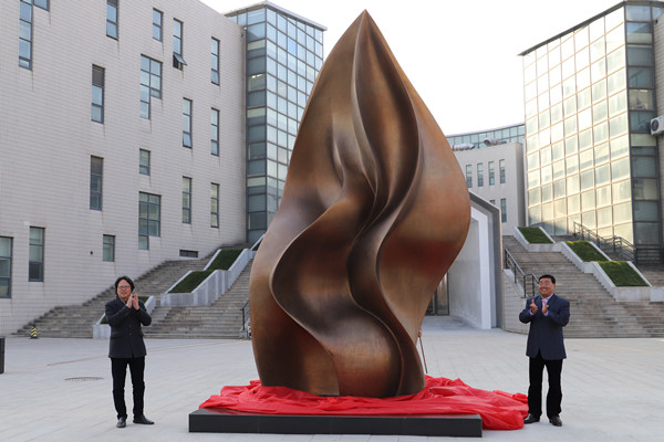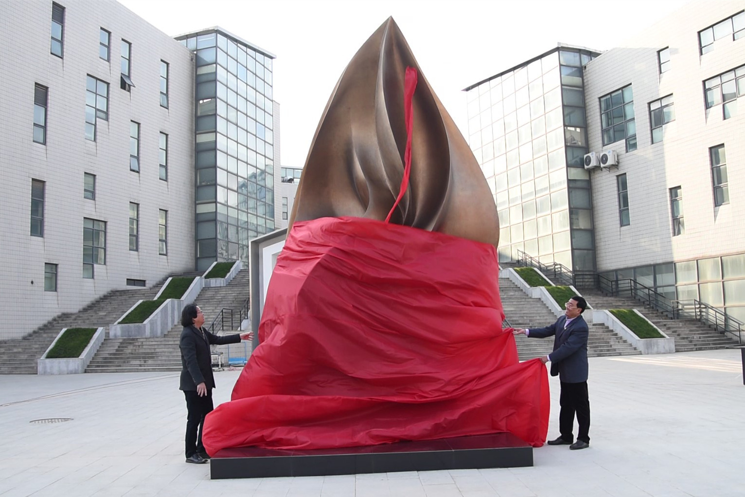 12月5日,大型雕塑《永恒的绽放》落成仪式在我校长清校区图书馆前举行。院长王力克、党委副书记孔祥华出席仪式为雕塑落成揭彩。各党总支书记、统战委员,相关部门负责同志及美术学院师生代表参加落成仪式。落成仪式由党委委员荆雷主持。
