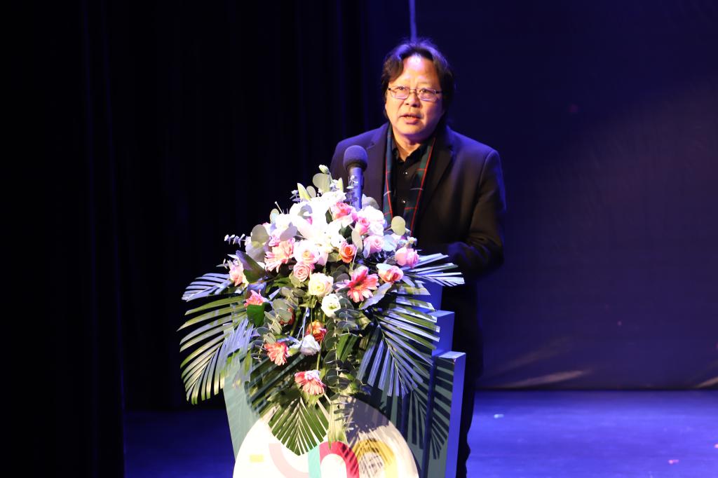 王力克代表学校党委行政及全校师生对郭婷婷女士一行表示热烈欢迎和衷心感谢,并向获奖者表示祝贺。他指出,郭婷婷女士不仅是著名的影视出品人,更是山东艺术学院的优秀校友,一直关心着学校的发展和建设。郭婷婷奖学金的设立,体现了她心系母校建设发展、热心艺术教育事业的爱心和责任感。奖学金评审突出了“艺术上有创新精神与发展潜力”的标准,契合时代和社会对优秀艺术人才培养的要求,调动和激励了相关专业学生勇于创新、努力奋进的积极性,对于学校艺术人才培养发挥了积极而重要的作用。本次大赛是奖学金自2016年设立以来举办的第四届评选,历届郭婷婷奖学金的评审和颁奖都有创新与突破,今年创新形式对相关专业学生拍摄微电影作品给予支持,并根据创作成果的质量和水平进行评奖,获奖作品体现了青年学子较高的思想性、艺术性和创新性。希望获奖的同学们再接再厉,严谨踏实,奋发进取,以郭婷婷女士对母校的爱心和善举为动力,从奖学金所体现的奉献精神和责任意识中汲取力量,确立更为远大的人生目标,在艺术的道路上不断求索。希望全体同学以获奖者为榜样,努力学习奋进,勇于开拓创新,实现艺术和人生之路的不断提升与自我完善。最后,他深情地对全体师生寄语“你若绽放,蝴蝶自来;你若精彩,上天自有安排”。