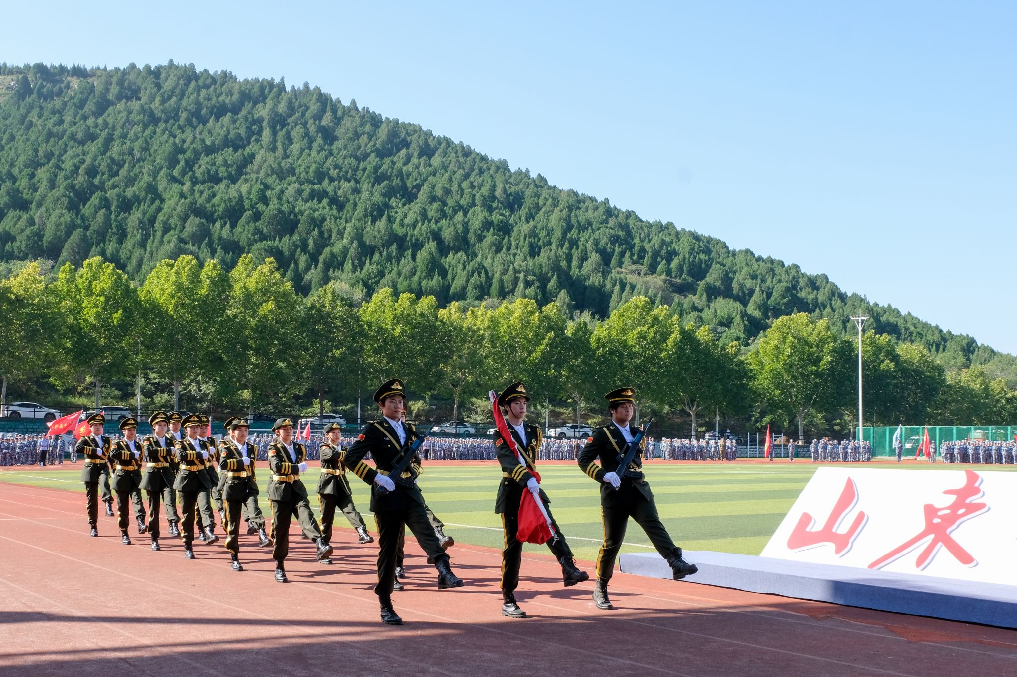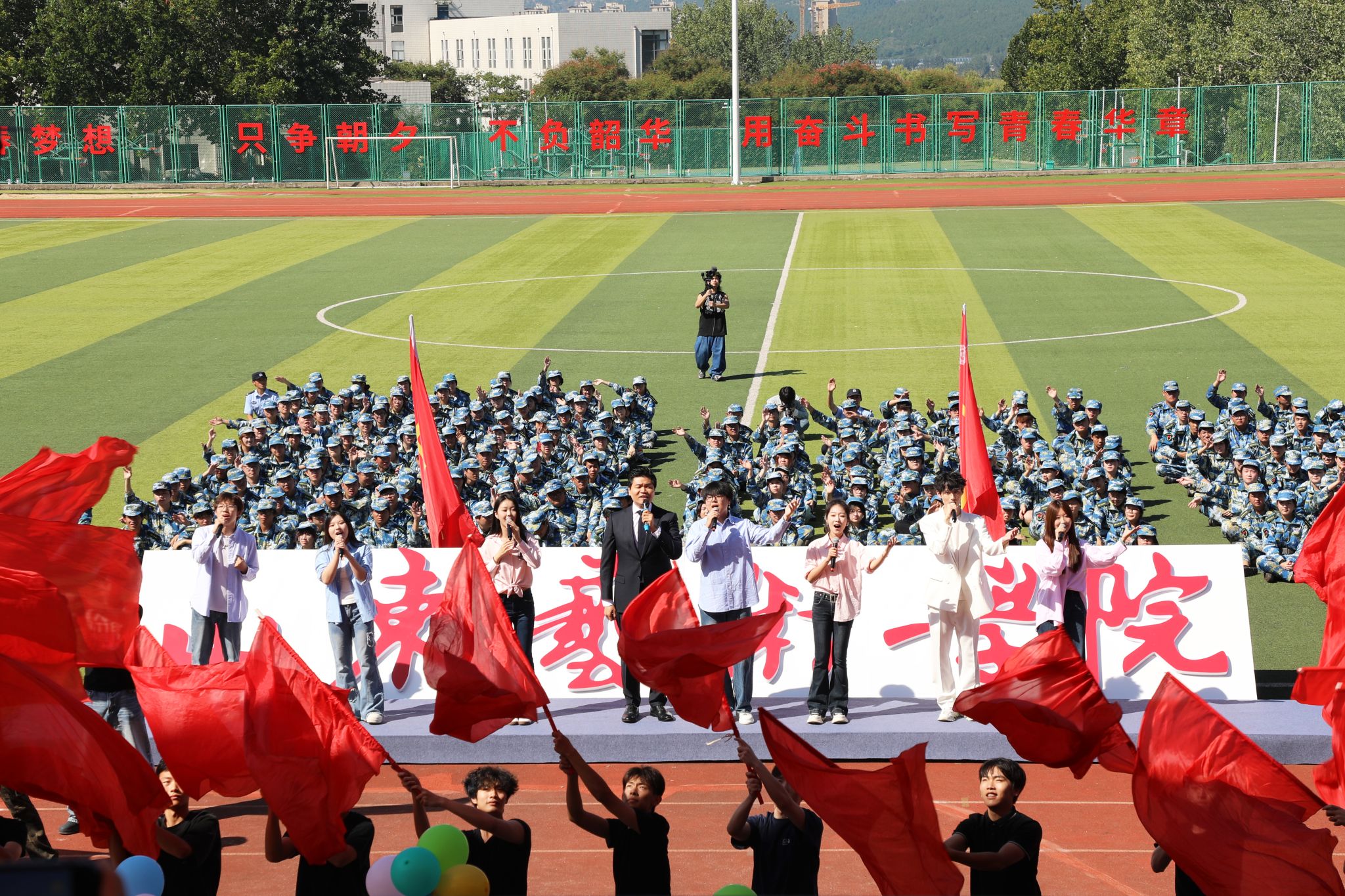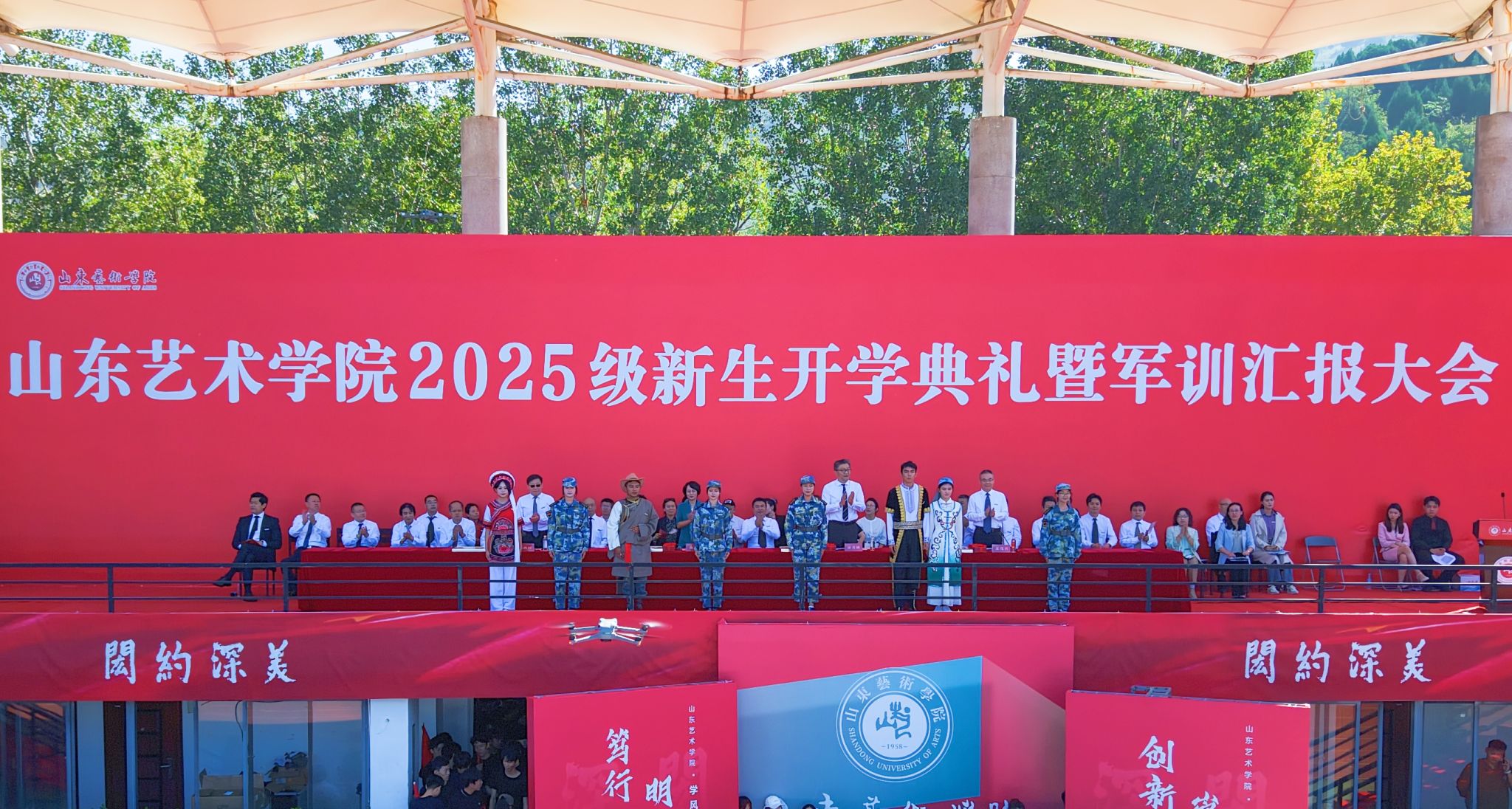 9月25日,山东艺术学院长清校区田径场上青春洋溢、朝气蓬勃,2025级新生开学典礼暨军训汇报大会如期举行。党委书记徐梅,院长徐青峰,党委副书记杨西国,副院长苏茂兴出席典礼。典礼由苏茂兴主持。