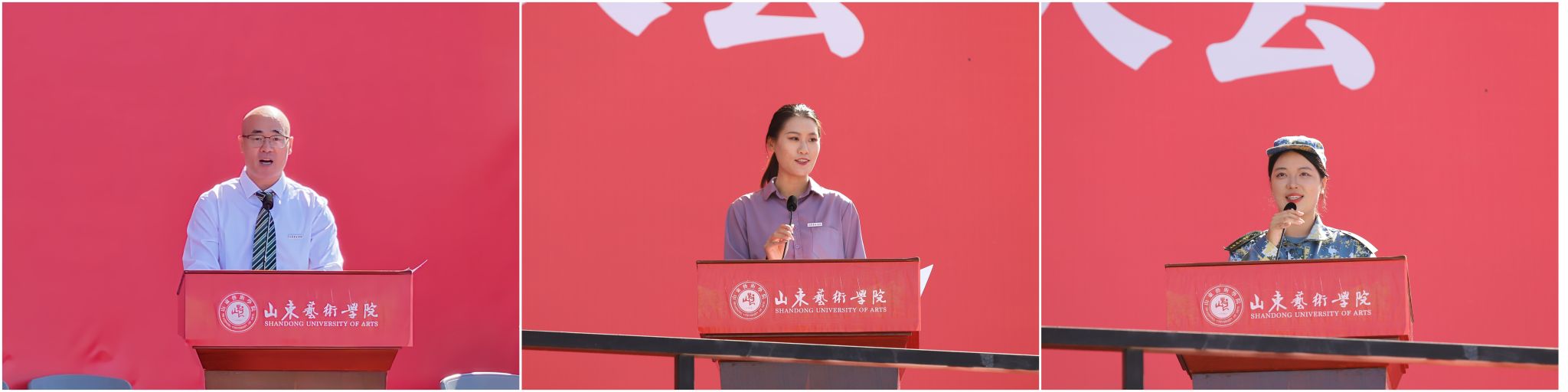 教师代表、国际艺术交流学院教授刘翔宇勉励新生以开放心态拥抱跨界与科技,让艺术理想插上时代的翅膀;校友代表、九三阅兵民兵方阵成员王天慈以从军营到阅兵场的成长轨迹,生动诠释了山艺人所肩负的家国情怀与使命担当;新生代表、电影学院2025级戏剧影视美术设计专业学生盛怀瑾抒发了对未来的无限憧憬与立志求学的坚定决心。