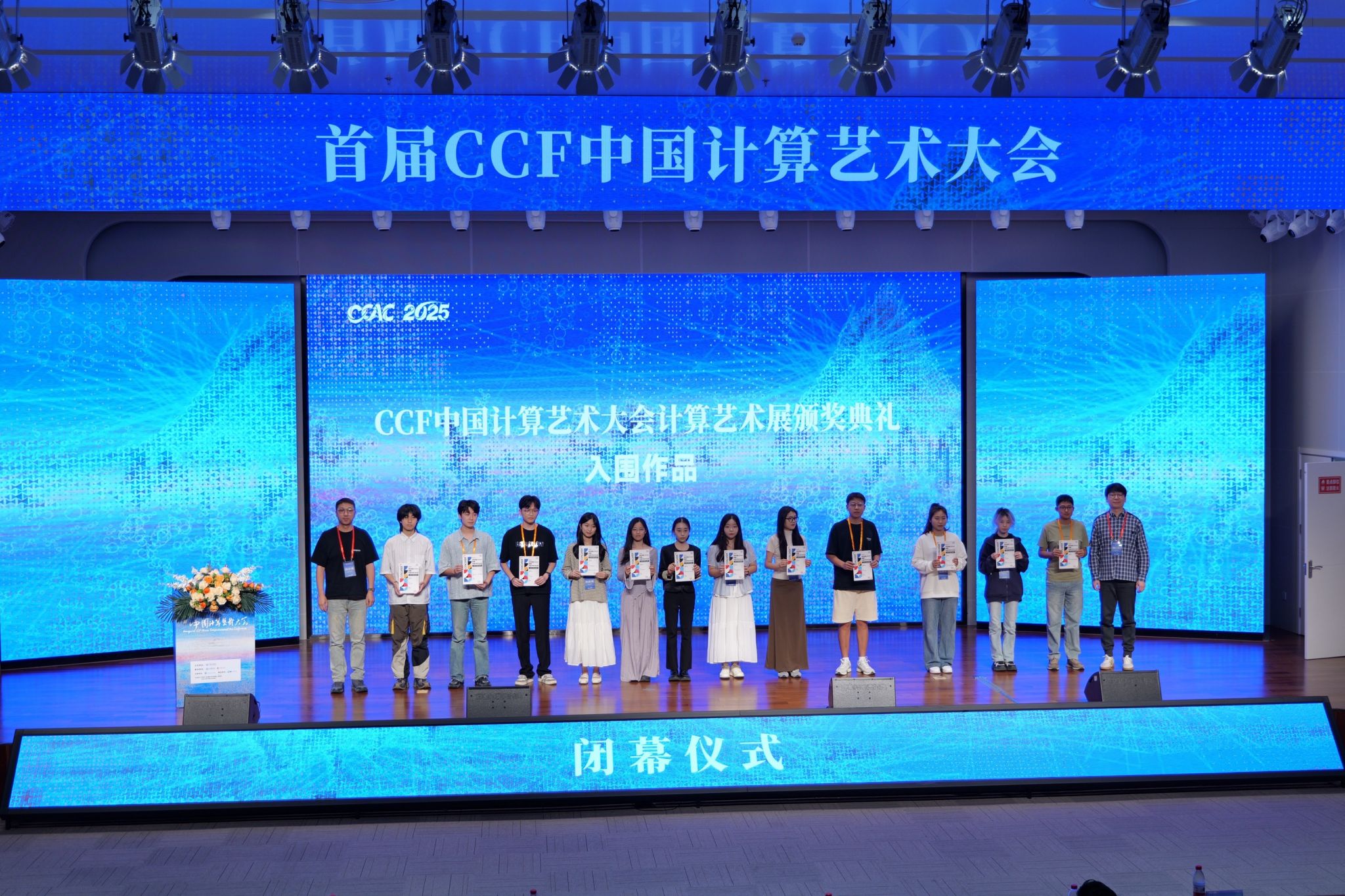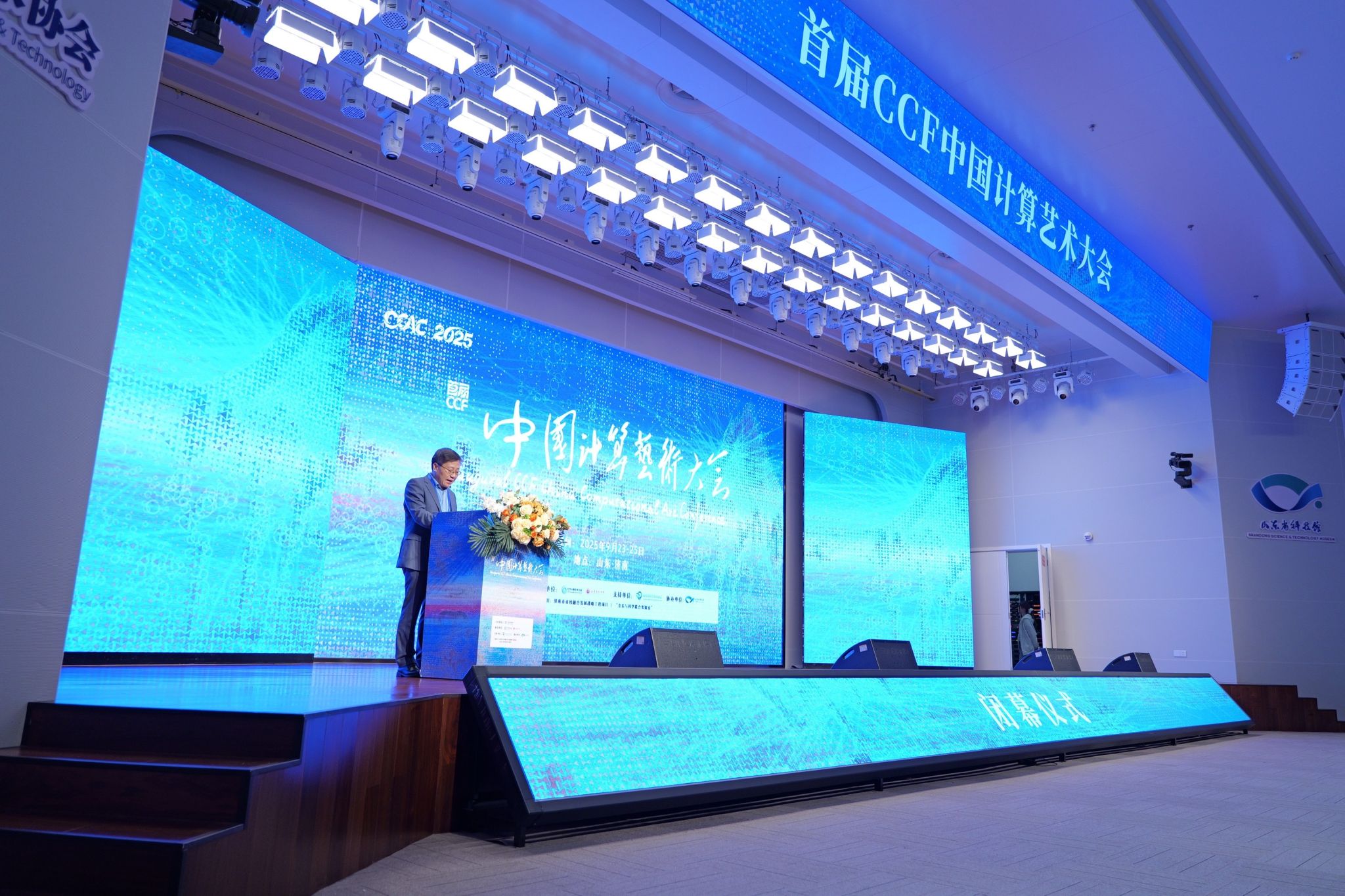 9月25日,为期三天的首届 CCF 中国计算艺术大会(CCAC 2025)闭幕式在山东省科技馆科技会堂举行。学校党委副书记杨西国出席并讲话,CCF中国计算艺术大会“计算艺术展”展览委员会主席魏冰、白小墨,学校教务处、科研处、音乐学院相关负责同志,与会专家学者及师生200余人参加闭幕式。