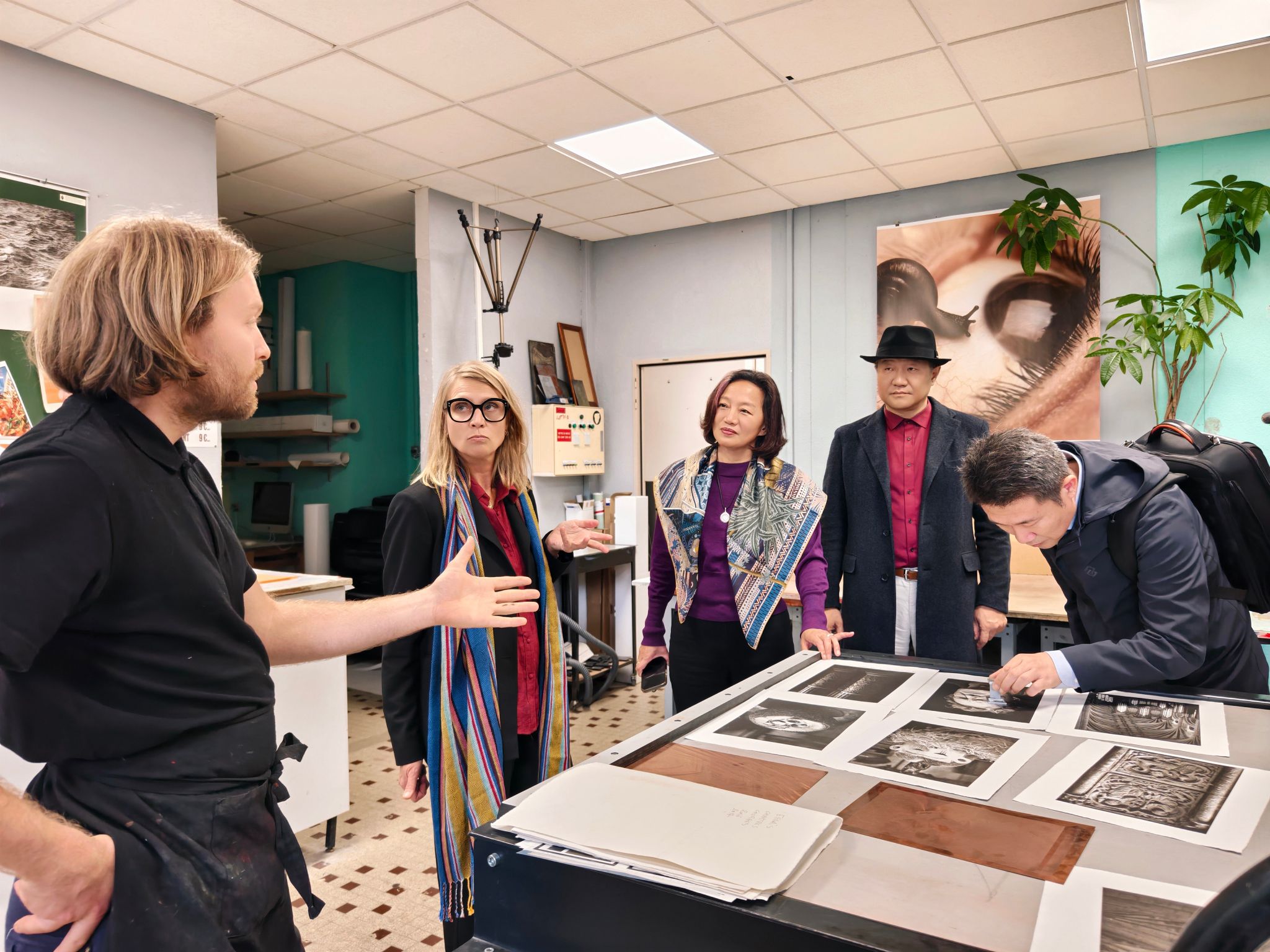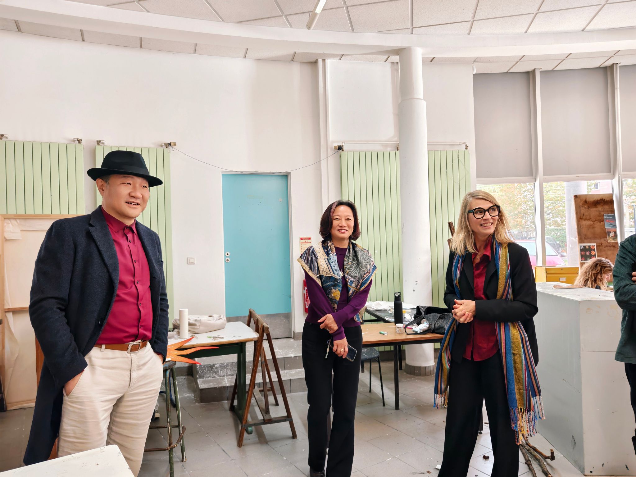 法国当地时间10月20日下午,山东艺术学院院长徐青峰一行应邀访问法国诺曼底高等艺术与设计学院,与院长乌尔丽卡·比特纳举行会谈,讨论关于两??购献鹘涣骱秃献靼煅喙厥乱?。法国让·卡尔多基金会委员、中法艺术与科学研究发展协会执行主席陈岩参加活动。