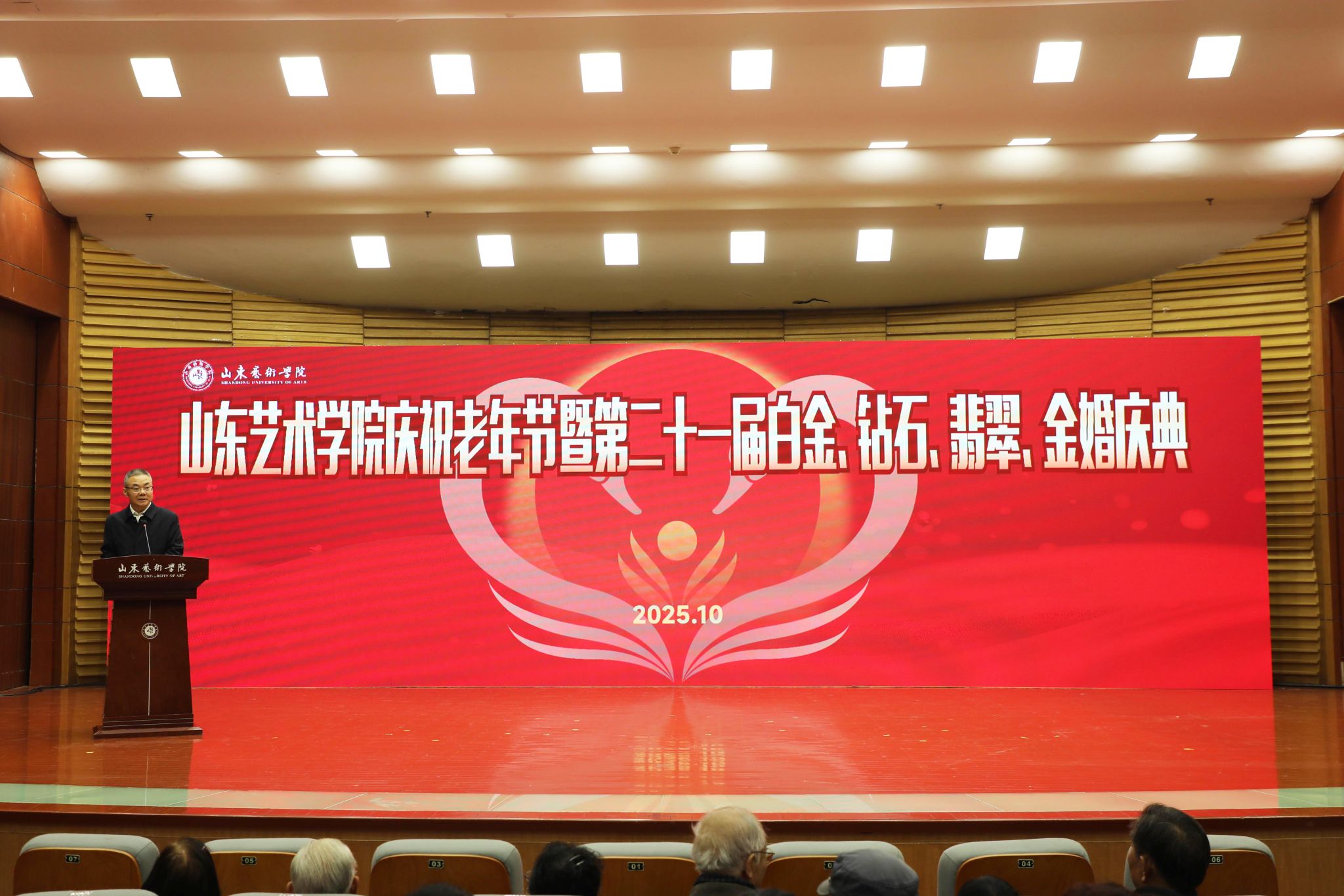 10月28日,山东艺术学院庆祝老年节暨第二十一届白金、钻石、翡翠、金婚庆典在文东校区举行。党委书记徐梅出席活动并致辞。省直老干部工作第八联络片联络员、省教育厅原副巡视员张海泉,省教育厅离退休干部处处长刘可宁,山东大学离退休工作处处长、离退休党委书记郭举修,山东师范大学离退休工作处副处长刘丽;学校原党委副书记、院长刘玉晨、张志民,原党委副书记、副院长李传玉,原党委委员、副院长李作德,学校党委委员孔亮、孔宪坤出席活动。学校离退休老同志、离退休工作领导小组成员、学生代表参加活动。庆典活动由学校党委委员、副院长苏茂兴主持。