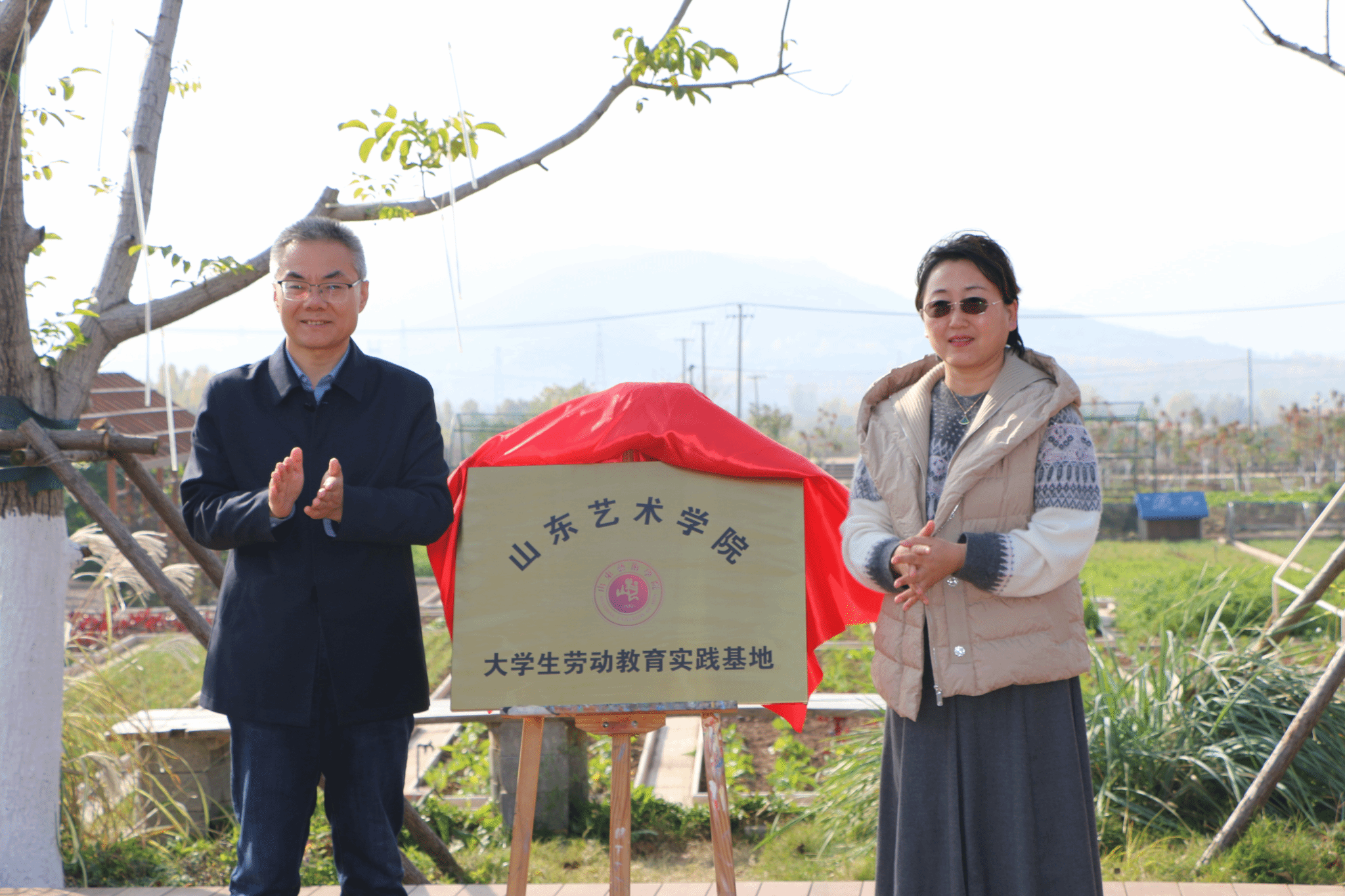 近日,山东艺术学院“大学生劳动教育实践基地”揭牌仪式在济南长清马山百里田园度假区举行。党委委员、副院长苏茂兴、济南市长清区马山镇党委书记李莹出席仪式。学校学生工作部(处)、教务处相关负责人、劳动教育实践指导教师、电影学院学生代表参加仪式。