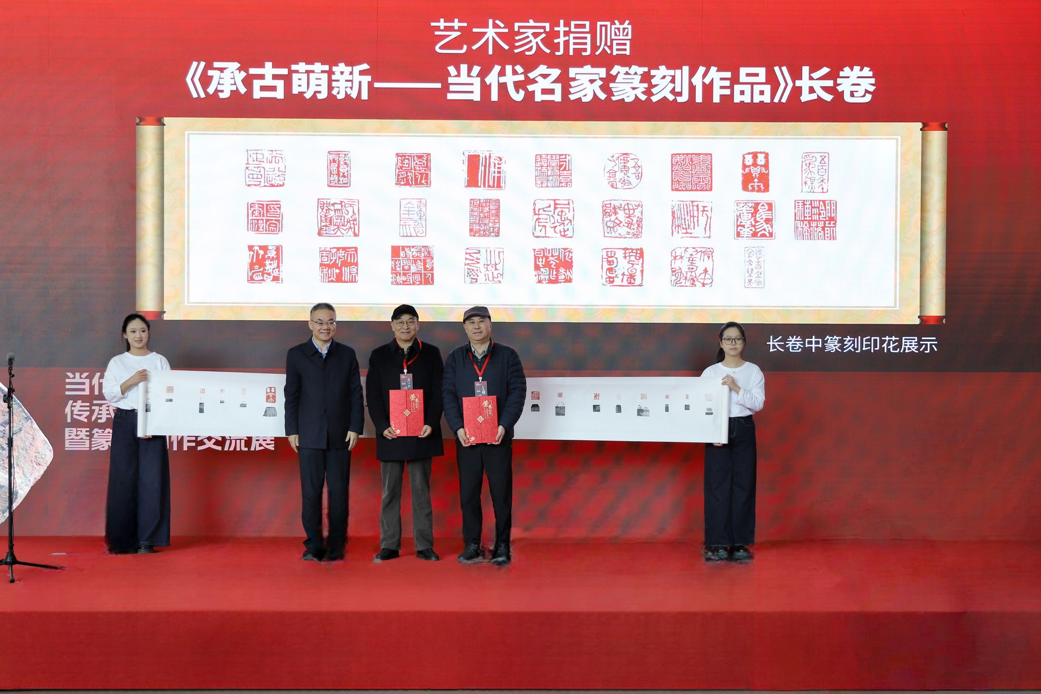 开幕式上,篆刻家代表许雄志、范正红向山艺美术馆捐赠了篆刻长卷,苏茂兴代表校方接受捐赠。