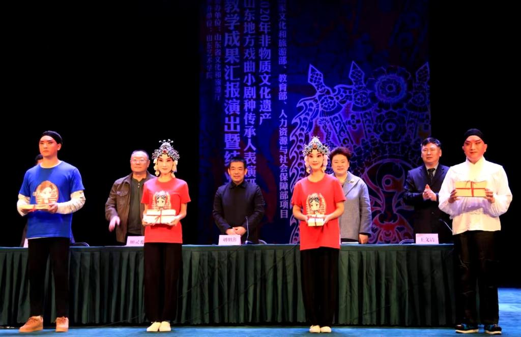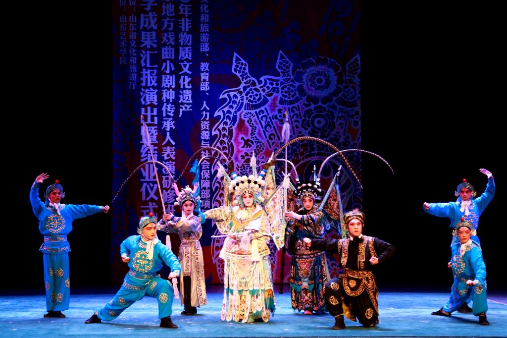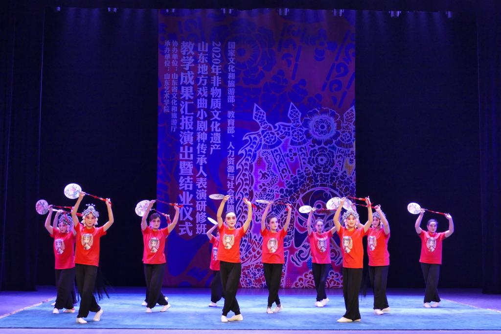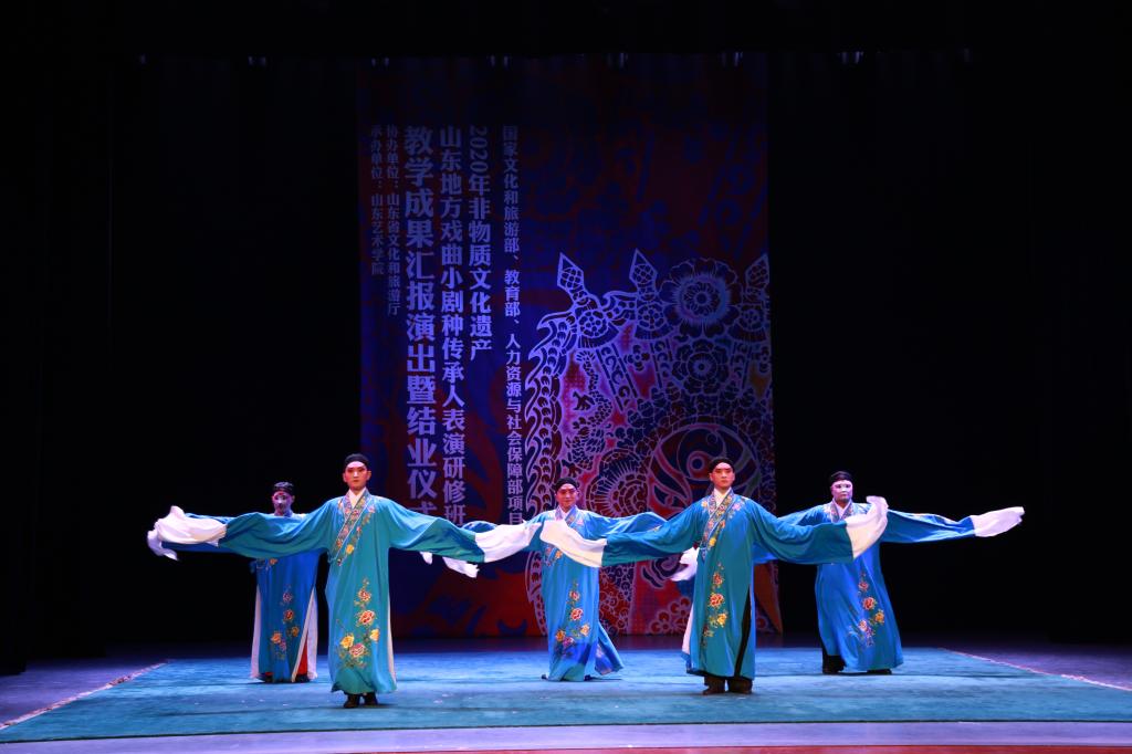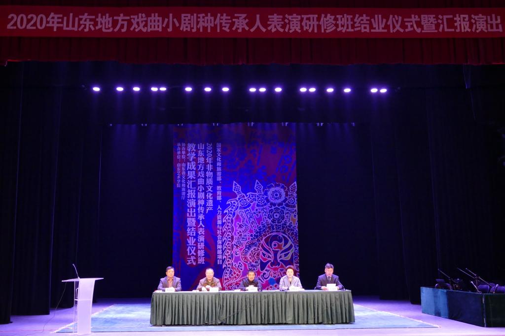 11月18日,国家非物质文化遗产传承人群研修研习培训计划·2020年山东省地方戏曲小剧种传承人表演研修班结业仪式暨教学成果汇报演出在山东艺术学院文东校区艺术剧场圆满落幕。山东省文化和旅游厅非遗处处长刘朋鑫,山东艺术学院副院长刘晓静,艺术实践与创作处、戏曲学院负责人及各地方院团代表、戏曲学院师生代表参加了活动。结业仪式由戏曲学院院长王文清主持。