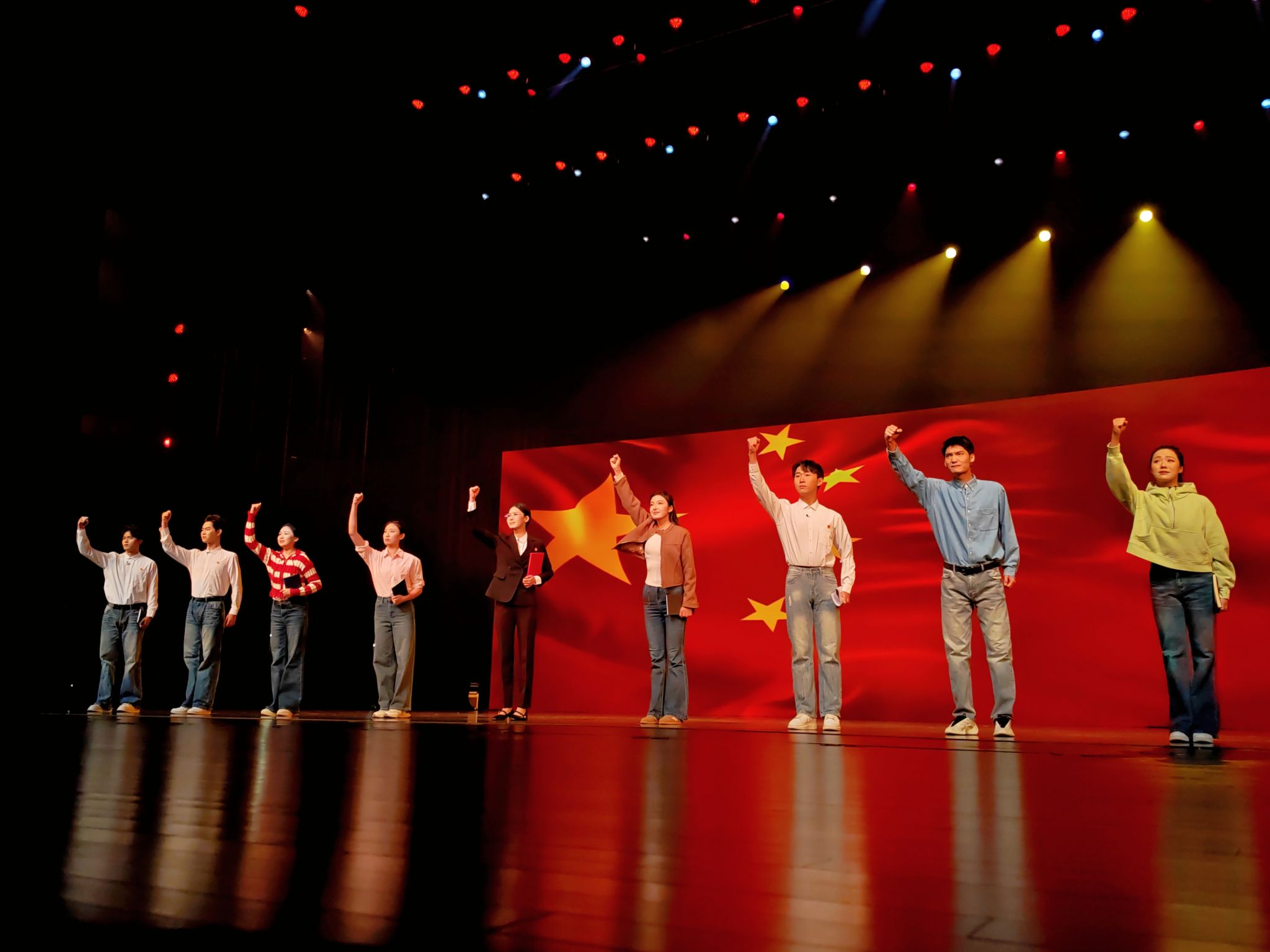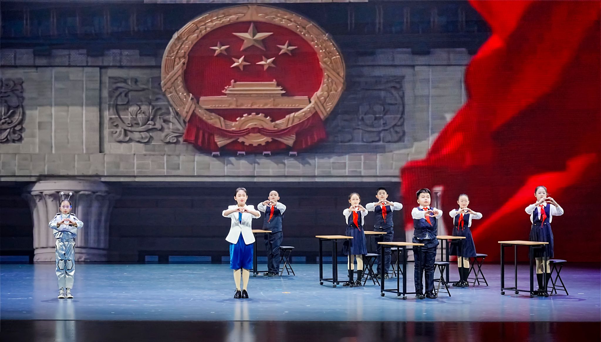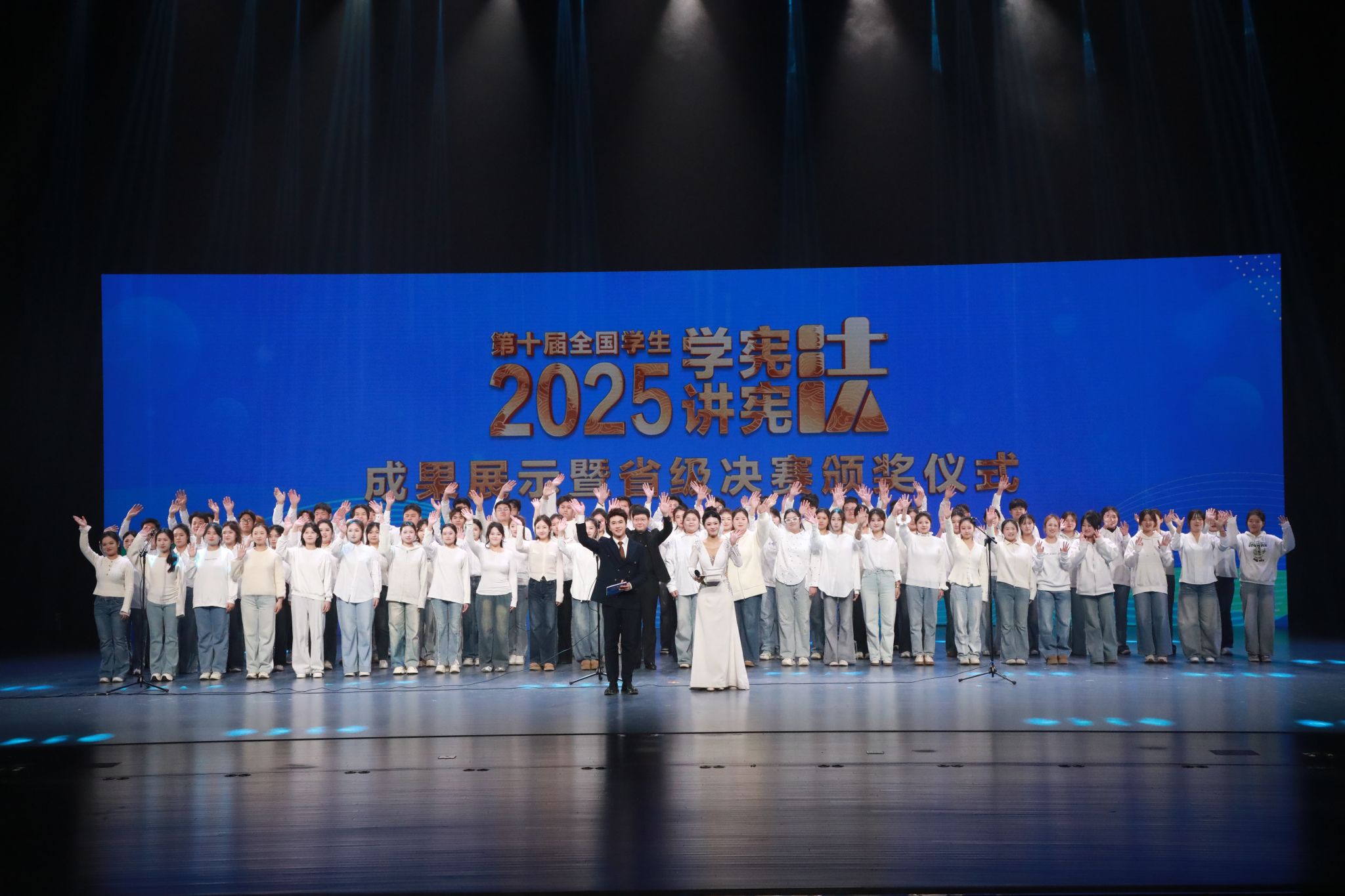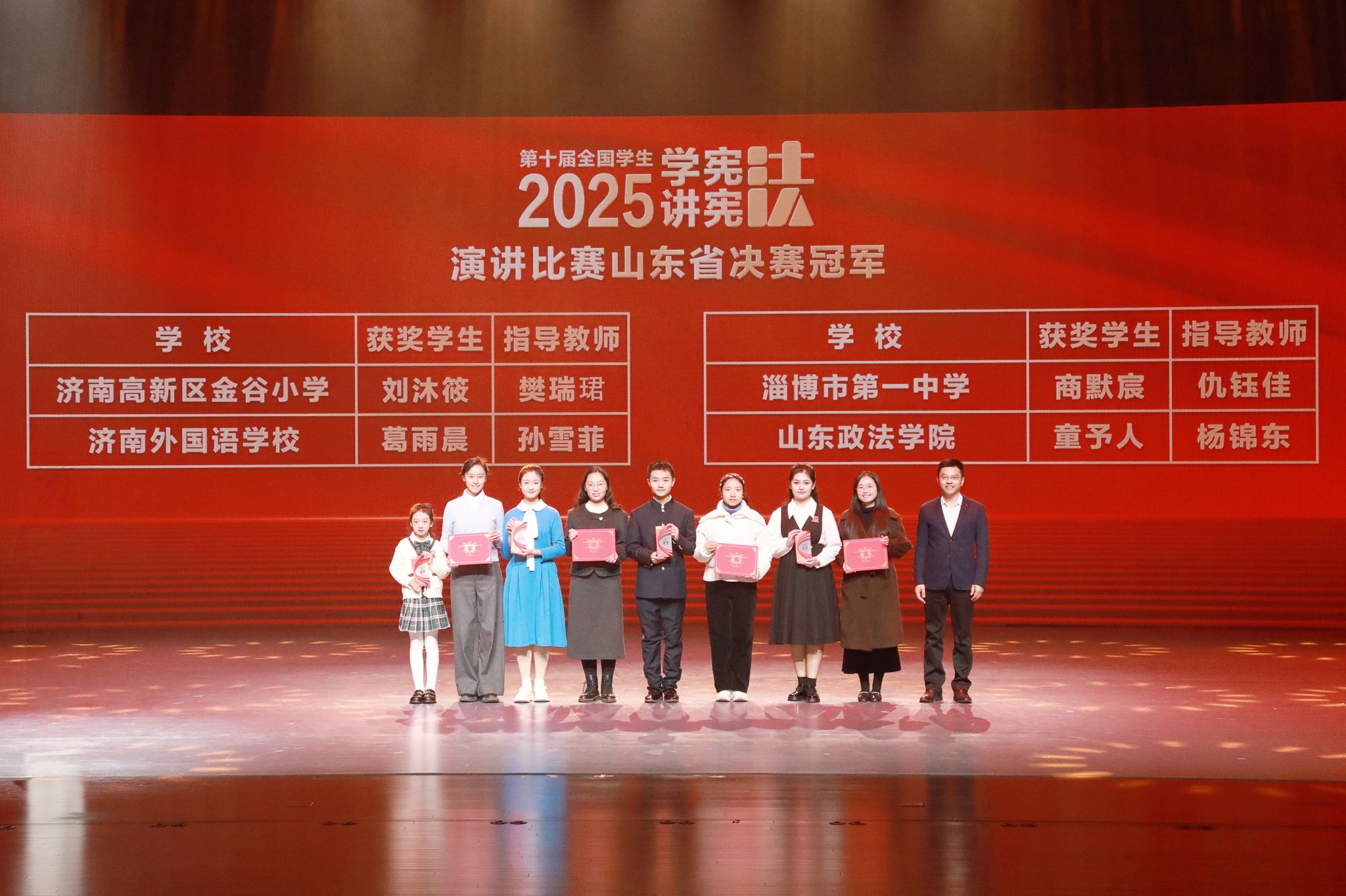 本次活动分为省级冠军作品展示和全国获奖作品展示。省级演讲比赛小学、初中、高中、高校四个组的冠军济南高新区金谷小学刘沐筱,济南外国语学校葛雨晨,淄博市第一中学商默宸,山东政法学院童予人分别以《宪法,我们身边的“超级英雄”》《国歌响起》《学问思辨明宪法,以身行之报中华》《以文化之韵传宪法之光,以青年之声扬法治之道》为题现场展示,从不同视角解读宪法守护权利的故事。我校戏剧学院副教授臧笑楠导演,学生李昊编剧,刘昊、王辛格、陈一慧等2024级表演班学生主创的原创情景剧《铸魂》以田汉创作国歌、曾联松设计国旗等历史场景再现,结合师生宪法课堂研讨的虚拟场景,通过跨越时空的对话与集体宣言,展现了从艺术创作到法治奠基的历程,荣获全国高校组亚军;烟台招远市西苑学校教师付娜导演,张艺骞、李诚、陈芯瑶、郭静秋等小学生主创的普法情景剧《法典之光?成长守护》通过小学生乐乐、琪琪、淘淘的日常故事,以戏剧化语言演绎宪法守护青少年成长的故事,荣获全国中小学组一等奖。2部在全国总决赛中获奖的法治情景剧现场展示为我们带来一场沉浸式的法治教育课,增强了师生学法、知法、守法、用法、护法的法治观念。