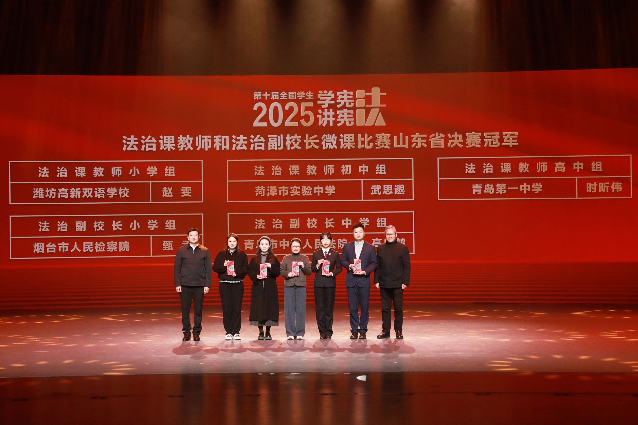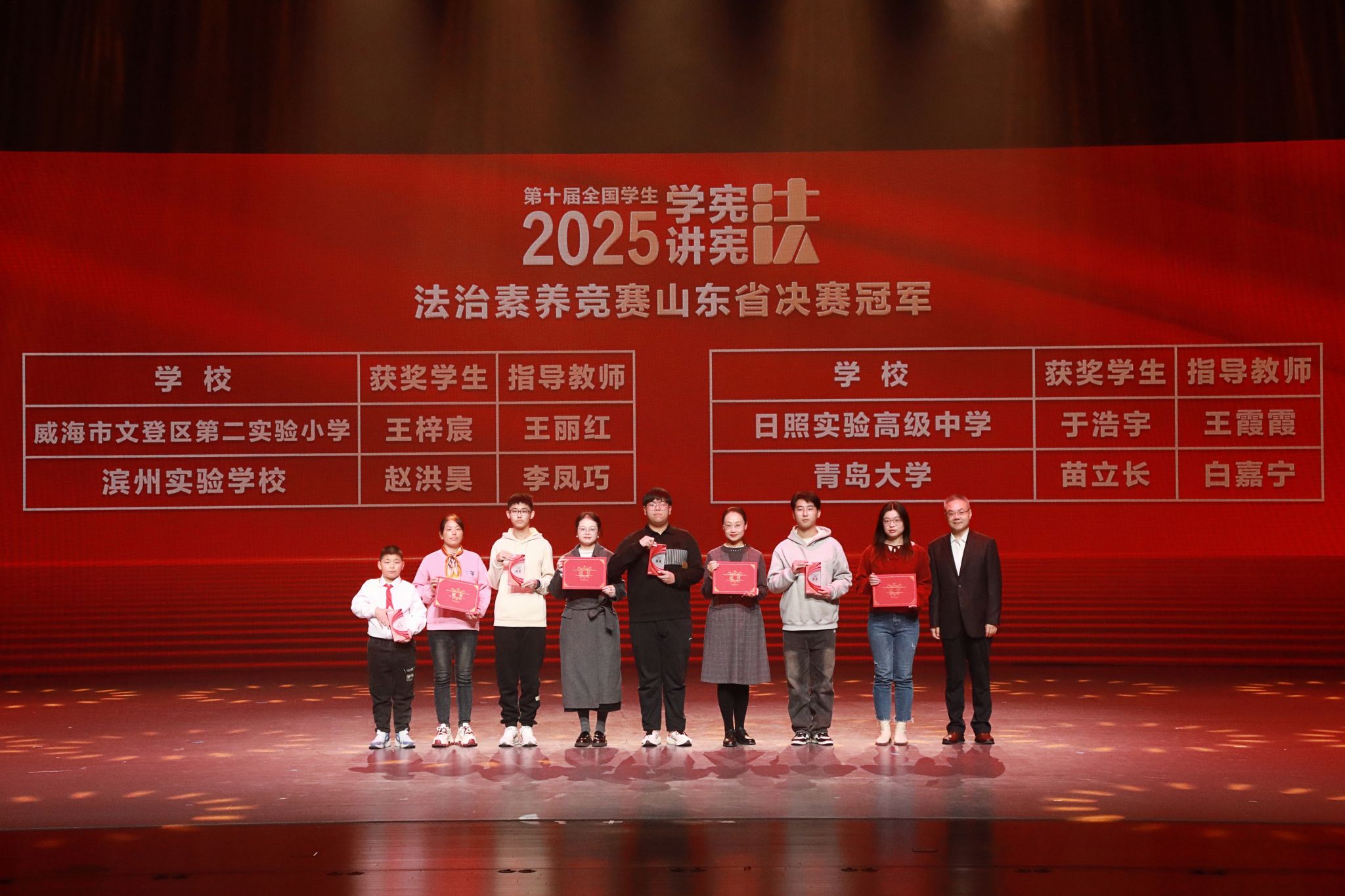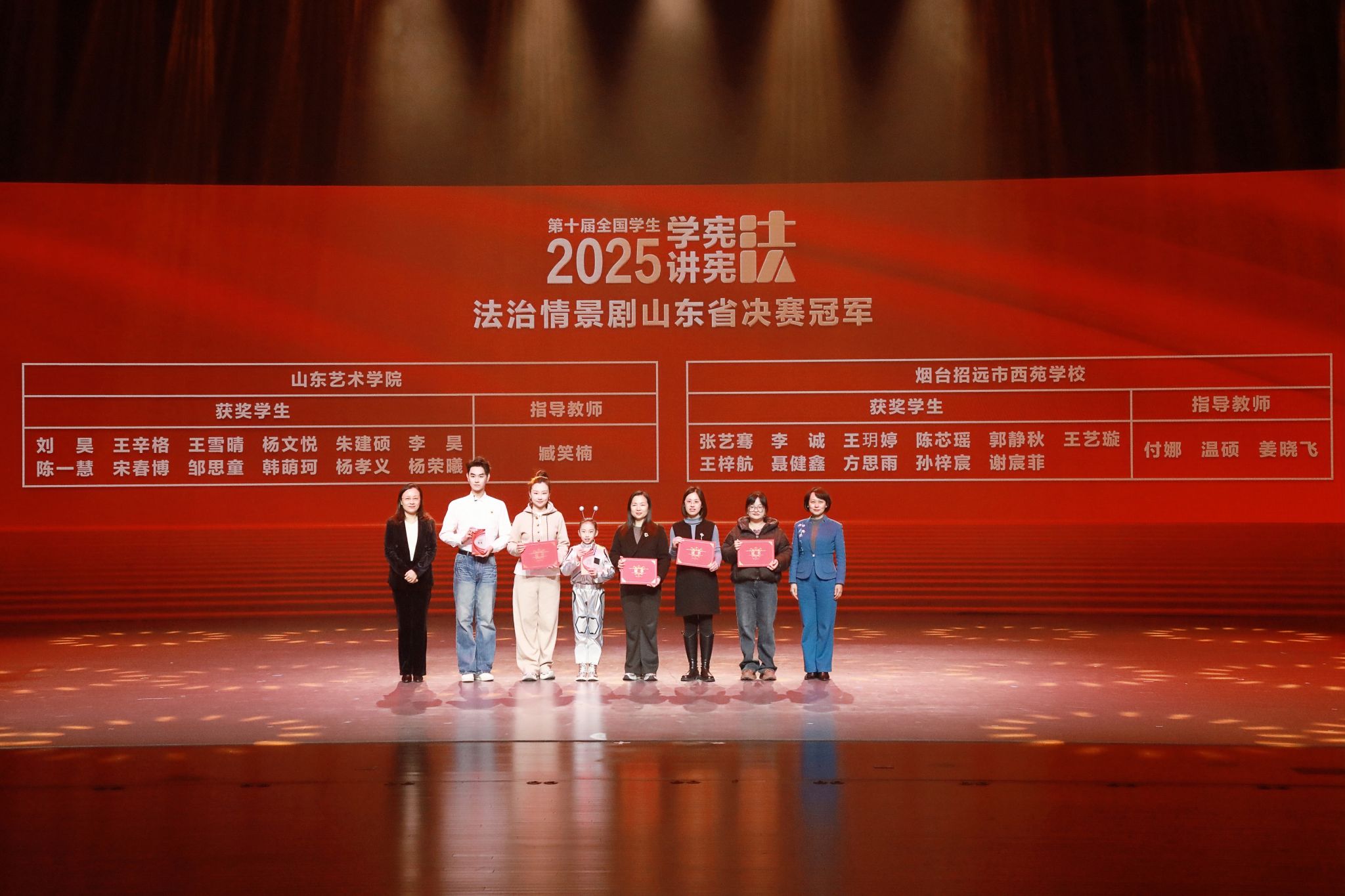 12月5日,由山东省教育厅主办,山东艺术学院和山东教育电视台承办的第十届全国学生“学宪法 讲宪法”成果展示暨省级决赛颁奖仪式在长清校区大剧院举行。省委教育工委委员,省教育厅党组成员、副厅长李鹏,党委书记徐梅,山东教育电视台党委书记、台长王上,党委副书记苏茂兴,省司法厅普法与依法治理处处长李传华,省教育厅政策法规处二级调研员幸晓涛以及荣获省赛一等奖的高校领导、16地市领导出席活动,省赛冠军选手、指导教师和山东艺术学院师生代表600余人参加活动。