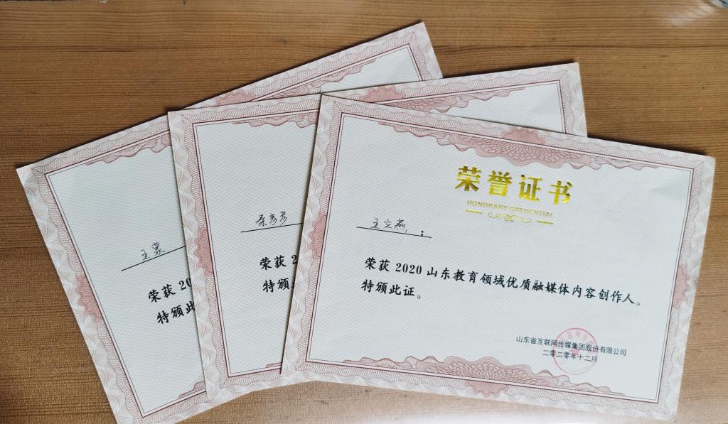12月25日,由山东省互联网传媒集团主办的2020山东教育品牌建设与传播管理研讨会在济南举行。会议现场发布了2020山东最佳社会声誉奖和2020山东最具影响力教育政务融媒体两大榜单,我校荣获“2020年度山东最佳社会声誉高校”和“2020年度山东最具影响力教育政务融媒体”两个奖项。党委宣传部(信息中心)王立燕、秦彦彦、王蒙荣获“2020山东教育领域优质融媒体内容创作人”称号。山东省教育厅(省委教育工委)办公室二级调研员、新闻中心主任宋全政,山东省互联网传媒集团党委常委、副总经理姜长勇为获奖单位颁奖。全省共有155所高校和技师学院参与评选活动。