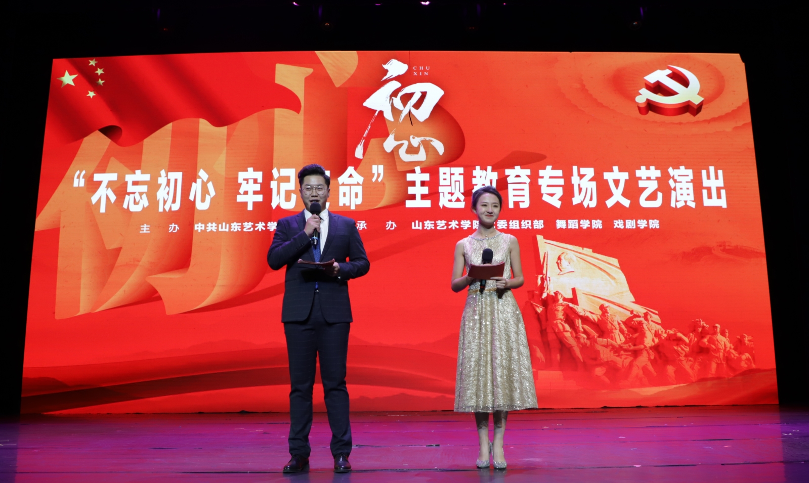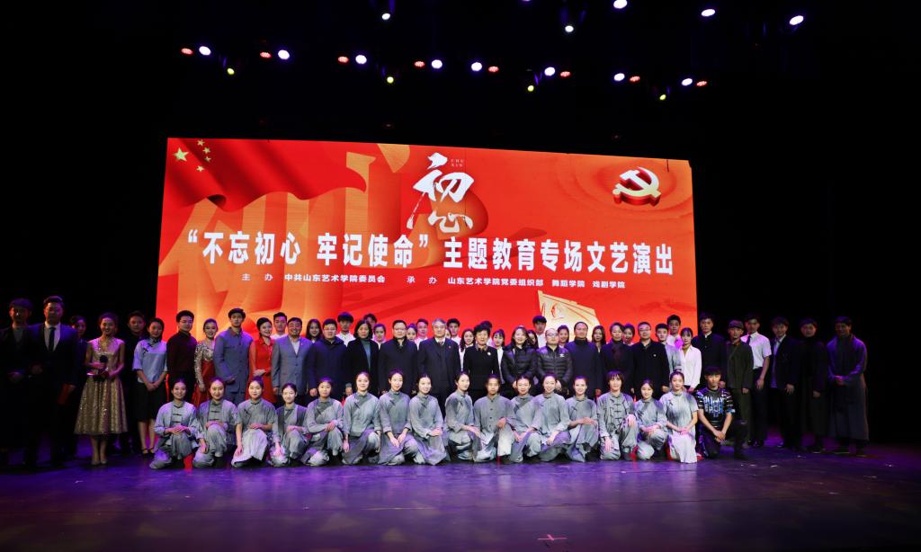 文艺演出《初心》以一名山艺大学生从普通学生成长为优秀党员的经历为主线,讲述了其在学习与实践中不断成长进步的故事。演出通过情景朗诵《青春》《誓言》《钱学森回国》《信仰的力量》、歌曲《再唱沂蒙山》《共和国之恋》《我爱你中国》、舞蹈《殇》《刀锋》等节目,生动塑造了优秀共产党员的光辉形象,深刻诠释了共产党员的担当、青春的意义、人生的价值、信仰的力量。整场演出饱含深情、催人奋进,演出过程气氛热烈、精彩纷呈,激起全场观众阵阵掌声,引起了大家强烈的情感共鸣。