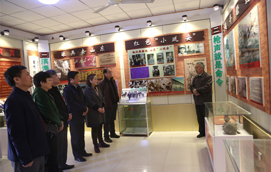 报告会前,杨秀玉教授一行到朱村历史文化展室参观学习,同支前模范王克昌同志座谈,瞻仰了抗日烈士纪念碑。