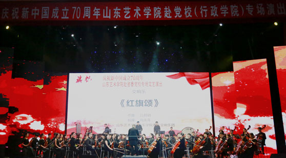 3月28日,“旗帜”——庆祝新中国成立70周年山东艺术学院赴省委党校专场文艺演出在省委党校礼堂隆重举行。中共山东省委党校(山东行政学院)常务副校(院)长徐闻、副校(院)长王卫东、一级巡视员朱光明、副校(院)长邵华、孙建昌、教育长高尚瑞,我校党委书记马东骅、院长王力克、纪委书记兰绍彤,省委党校市厅级领导干部进修班、人大政协领导干部进修班、县处级领导干部进修班、中青年干部培训班、乡镇党委书记进修班学员一同观看演出。