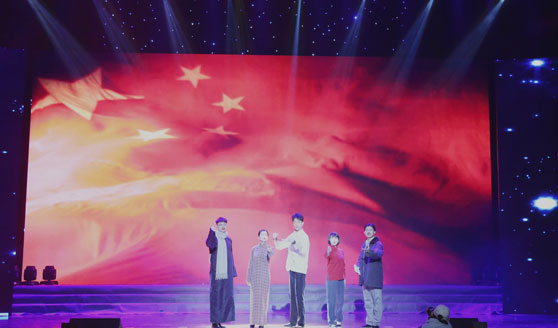 演出前,全体观众起立齐唱《中华人民共和国国歌》,大家群情激昂,热情澎湃。随后,交响乐《红旗颂》正式拉开了演出的帷幕。在上篇的节目中,歌曲《追寻》《绣红旗》《红梅赞》、情景诗朗诵《革命诗抄》、舞蹈《殇》带领观众一起回顾了那段党领导人民一路跋涉、一路凯歌的艰苦卓绝的难忘岁月。在下篇的节目中,歌曲《再唱沂蒙山》将观众带到了欣欣向荣的新时代,让他们仿佛听到了响彻华夏的一声声怒吼,看到了屹立东方的英武雄狮;在情景表演《我心中的“旗帜”》里,我们也着实感受到了那面迎风飘扬的鲜红旗帜在无数共产党人心目当中的崇高地位;在京歌《中国脊梁》和舞蹈《刀锋》中,无数共产党人挺起了胸膛,迎接胜利的曙光;歌曲《我和我的祖国》唱出了我们对党的热爱、对新中国的颂扬。演出在恢弘博大的舞蹈《红旗颂》中落下帷幕。最后,现场观众与全体演职人员一起高唱《没有共产党就没有新中国》,将整场演出气氛推向高潮。