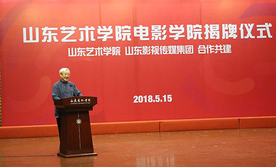谢飞在致辞中指出,山东艺术学院有很强的教学基础,和山东影视传媒集团合作共建电影学院,是在继承了优良教学传统上的强强联合,是顺应教育改革的时代要求、电影产业人才需要的重要举措,对于加强电影艺术人才培养、推动电影事业发展将发挥积极而重要的作用。他希望,山东艺术学院电影学院能够坚持创新意识,积极探索办学体制机制改革,不断提升教学水平,为山东建设影视产业大省,推进电影创作生产、繁荣电影产业,培养更多的富有创新精神和实践精神的优秀艺术人才。
