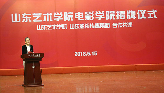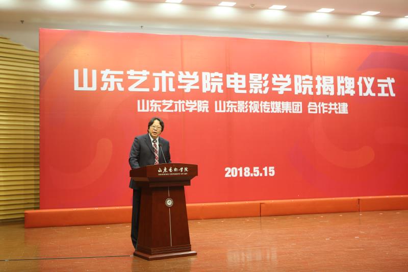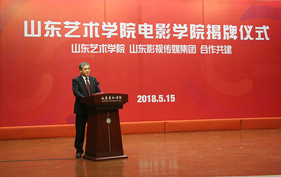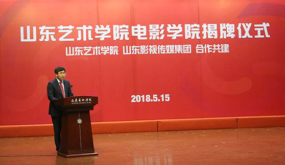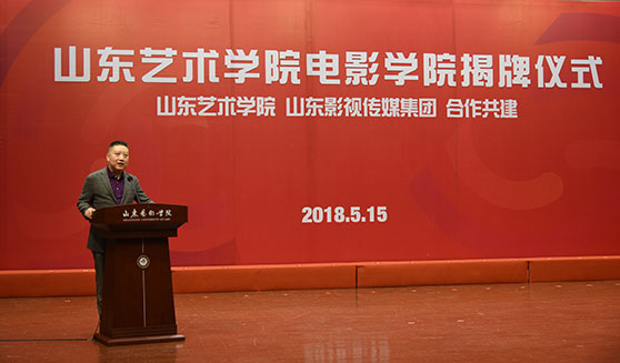 王力克在讲话中指出,贯彻落实好实现高等教育内涵式发展的新要求,积极参与新旧动能转换重大工程,是我省各高校必须肩负起的历史使命和政治责任。作为省内唯一的综合性高等艺术学府,山东艺术学院积极响应新时代的号召,在全面实现内涵式发展的新征程中,矢志不渝地服务山东经济文化社会发展,尤其是服务文化产业发展的初心不变,并力求有新的、更大作为。成立电影学院,是学校围绕一流大学建设,进一步解放思想,对专业进行裁、并、转、合,培植新的增长点,实现发展新旧动能转换的突破口,更是学校积极响应我省打造全国影视创作生产高地、建设“全国领先、世界水平”影视产业基地重大工作部署,争取新的、更大作为的有力举措。电影学院的成立,既有着良好的专业基础,更有着充分的社会需求和美好的发展前景,它应运而生,正当其时!新成立的电影学院,由山东艺术学院和山东影视传媒集团强强联手,共同组建。山东影视传媒集团是省管大型国有文化企业,也是全国影视传媒领域的龙头企业。集团打造的“鲁剧”品牌,是我省的一张亮丽名片,创作的《闯关东》《琅琊榜》等一大批思想性、艺术性、观赏性兼俱的优秀影视作品,家喻户晓、广受好评。集团也是我省建设全国影视创作生产高地的主力军,在深度拓展影视产业、打造影视全产业链方面,进行了卓有成效的探索,成绩斐然。集团的“山影.影世界”项目,已被列入我省新旧动能转化总体规划,成为支撑山东打造“全球影视中心”的重大项目,并被国家发改委列为国家级影视消费体验先行区。一年多来,学校与集团经过充分沟通、认真研讨,达成诸多共识,决定在影视人才培养方面进行深度合作,合作共建山东艺术学院电影学院,齐心协作将其打造成一个优秀的校企联合办学实体。