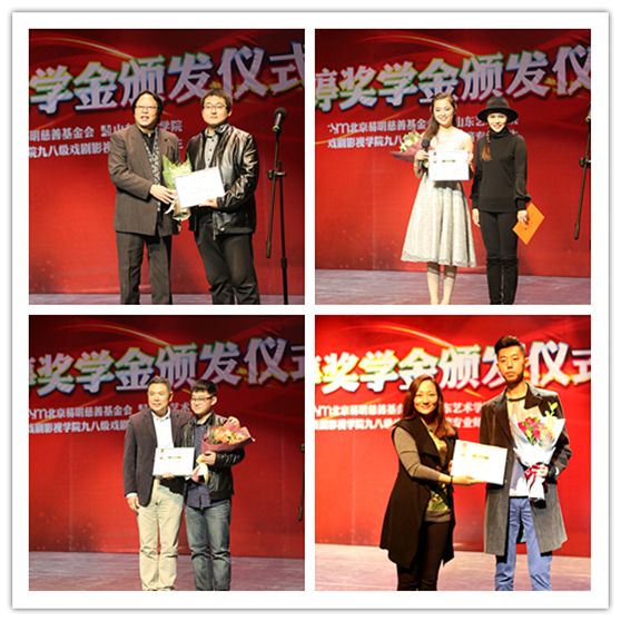 随后,王力克、郭婷婷、孙德成以及98级戏剧系表演专业校友张馨元、李雅菂、黄潇潇、冯永慧、韩霄琳依次为首届山东艺术学院郭婷婷奖学金开奖,并给获奖学生颁奖。