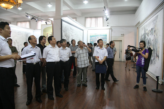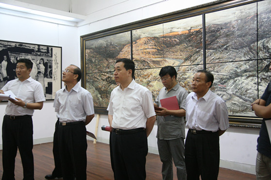 7月20日上午10时,十艺节全国优秀美术作品展览山东预选作品展览暨山东省重大历史题材美术创作工程作品展览在山东省博物馆隆重开幕。山东艺术学院党委书记李宗伟作为“十艺节”山东省筹委会群文美术部部长出席并主持画展开幕式。山东省美协主席、山东艺术学院院长张志民同山东省委常委、宣传部长孙守刚,山东省委宣传部副部长、省文化厅厅长徐向红等领导一同出席画展开幕式。开幕式结束后,党委书记李宗伟、院长张志民陪同出席开幕式的省领导观看了画展。