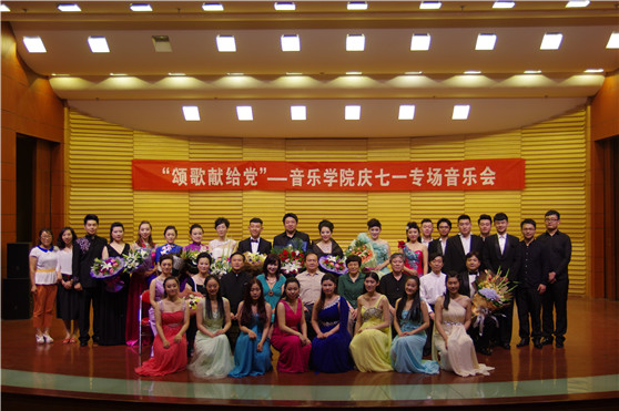 6月30日晚,艺术剧场一楼音乐厅座无虚席,掌声雷动、群情激昂,音乐学院党总支为落实学校党委党风廉政建设和“三严三实”工作要求,由各党支部师生积极参与,精心准备了一场名为“颂歌献给党”——庆七·一专场音乐会,演职人员以高水准的艺术演绎和饱满的创作热情向伟大的中国共产党致以最诚挚的祝福!学校纪委书记兰绍彤,相关职能部门负责人观看了演出。