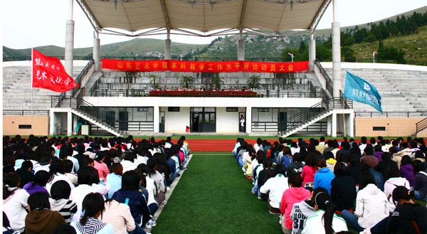同学们,我们的学校就像一艘大船,承载着全体山艺人的命运;又像一棵大树,供养着每一个树枝、每一片叶子茁壮成长。评估关系着每一个人,每一个山艺人,从老师到学生、从领导到群众,都将受到它的影响。我们必须统一思想,提高认识,团结和行动起来,为达到预定的评估目标而努力奉献。这是我们学校的大局,是当前全校的中心工作,是各项工作的重中之重,来不得半点马虎。在大局面前,局部利益、个人利益都要自觉服从全局利益和集体利益,为大局服务,为大局让路,这是山艺人的传统,也是评估成功的必然要求?!耙允肺?,可以知兴衰;以史为鉴,可以增斗志?!毖5姆⒄故?,是一曲山艺师生不息劳作、顽强拼搏、开拓进取的奋斗史。2008年9月我们还将迎来山东艺术学院建校50周年庆典,让我们以强烈的责任心、高度的使命感,坚定信心,以实际行动为本科教学工作水平评估做贡献,“迎评创优“将是我们为学校50华诞献上的厚礼,我们也将以此为契机,携手共创山东艺术学院光辉灿烂的美好明天!