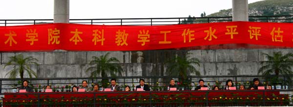 同学们,本科教学评估是一次机遇,更是一次挑战。时不我待,现在距离教育部专家组进校仅有20天的时间。让我们铭记“闳约深美”的校训,坚定信心,以冷静的思考来迎评,以饱满的热情来迎评,以良好的精神风貌来迎评,以严格的自律来迎评,以勤奋、严谨、求实、创新的学风来迎评!让我们以高度的责任感和使命感积极投入到迎评促建工作中去,人人争做文明使者,个个争当迎评先锋,事事都是观测点,人人都是得分手,从现在做起,从点滴细节做起,为顺利迎接教育部的评估而共同努力奋斗!共创山艺美好的明天!