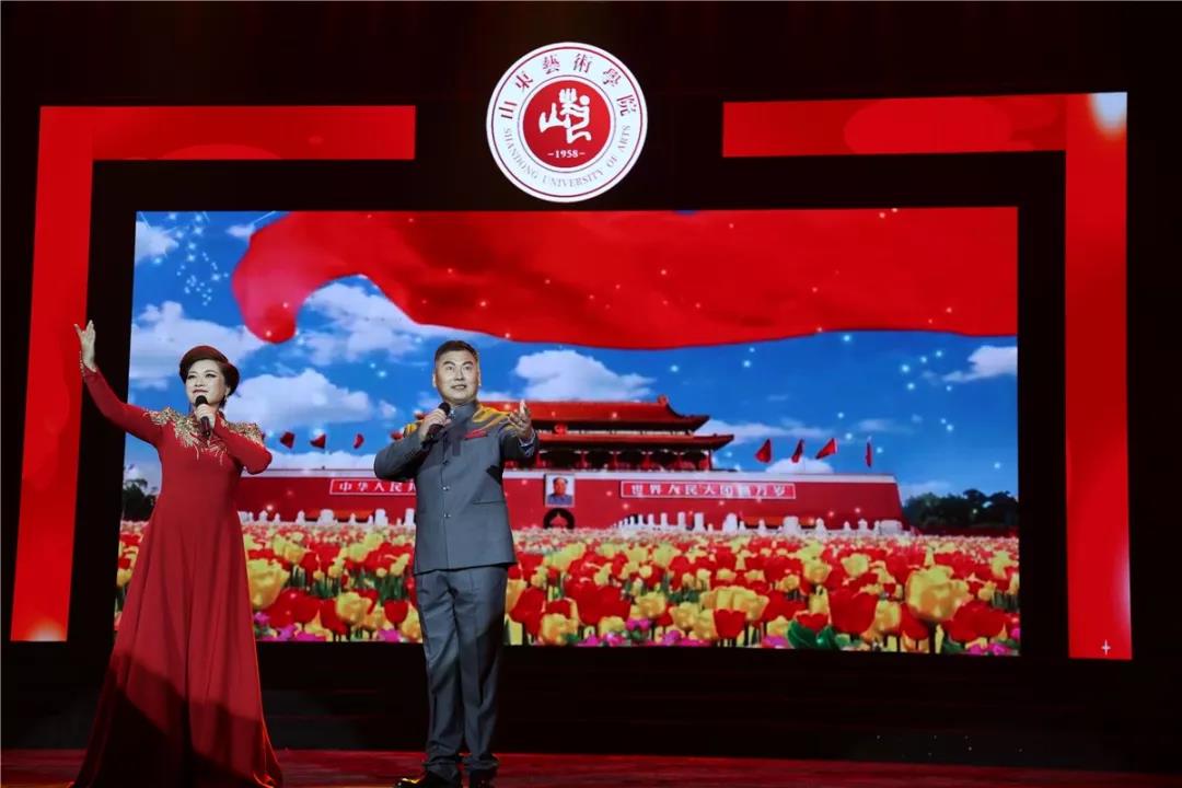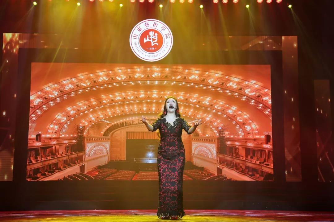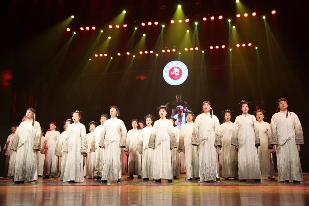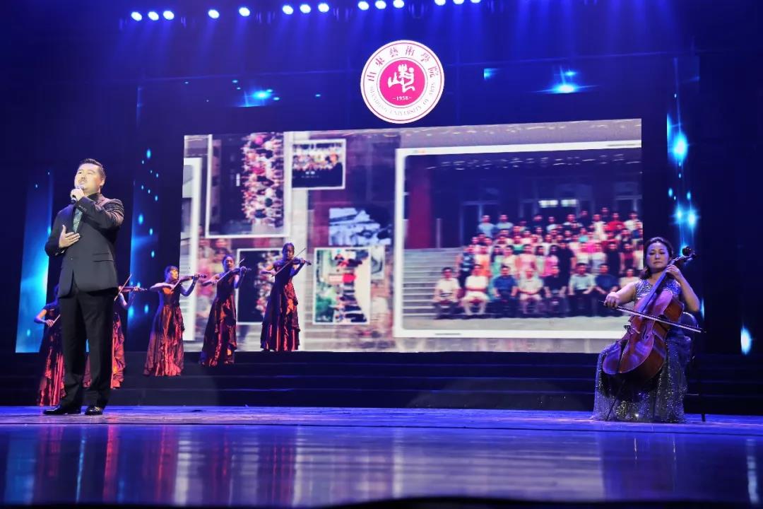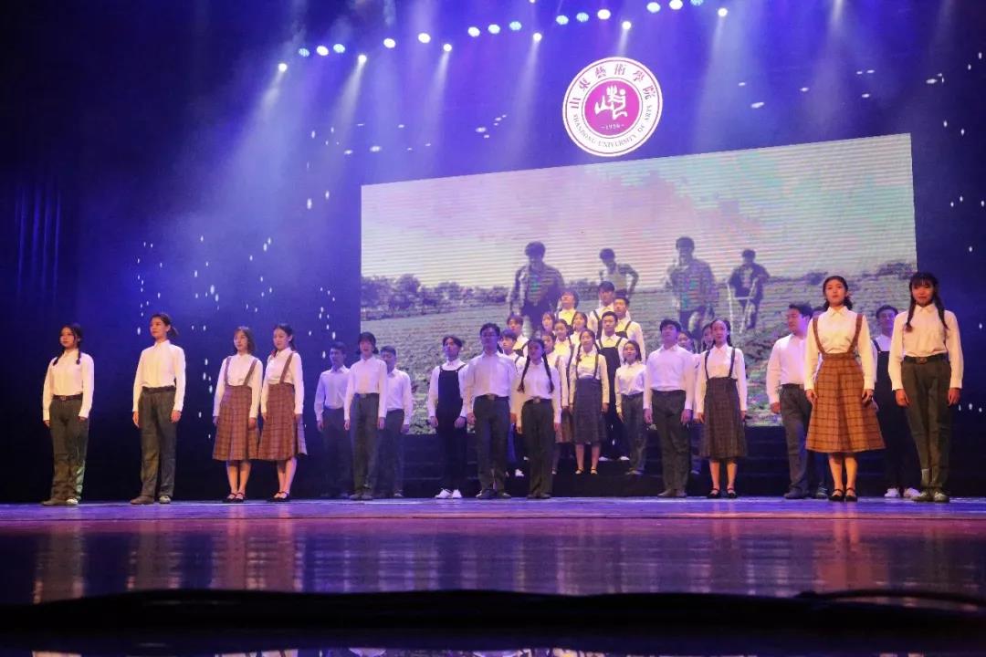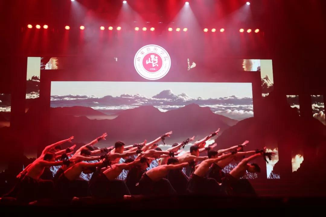 庆祝大会结束后,《“闳约深美”的颂歌——山东艺术学院建校60周年汇报演出》精彩上演。演出分“秋的纪念”“秋的欢庆”“秋的升腾”“秋的盛典”四部分,涵盖歌曲、舞蹈、讲述、京歌、歌剧、舞剧等。