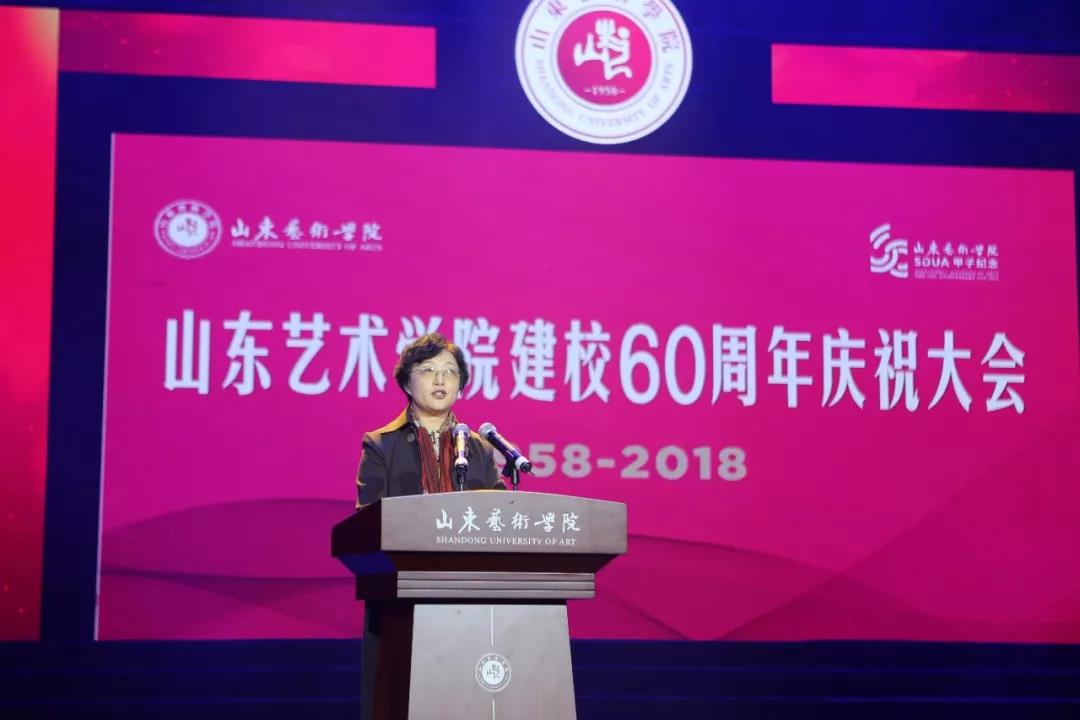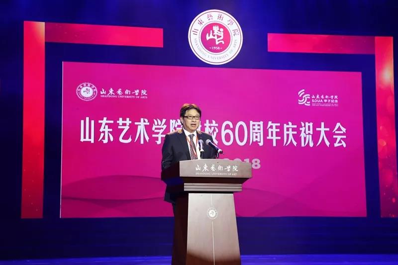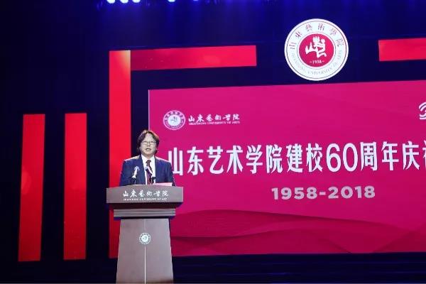 国家教育部体卫艺司领导在致词中,代表教育部向山东艺术学院全体师生和全体校友表示热烈祝贺。他指出,山东艺术学院建校60年来,始终坚持党的教育方针和文艺方针,传承弘扬“闳约深美”的校训精神和“崇德尚艺、重品育人”的优良校风,为社会输送了四万余名优秀艺术人才,现已发展成为国内知名的综合性艺术院校。特别是进入新时代以来,山东艺术学院认真学习贯彻习近平新时代中国特色社会主义思想和党的十九大精神,坚持质量发展、内涵发展、特色发展,加强一流学科建设,特色学科优势更加明显,艺术创作在全国重大展演赛事评奖中不断实现新的突破,服务社会的能力和意识越来越强,为山东省乃至全国艺术教育和文化事业发展作出了新贡献。他强调,习近平总书记在全国教育大会上的重要讲话,为加快推进教育现代化、建设教育强国、办好人民满意的教育,为教育事业特别是高等教育事业发展指明了前进方向,提供了根本遵循。希望山东艺术学院深入贯彻落实全国教育大会精神,勇于担当,积极作为,以推进一流学科建设为抓手,以建设博士授权单位为目标,全面推进艺术教育事业的改革发展,加快建设稳具实力、充满活力、富有魅力的现代化高水平艺术大学。希望山东艺术学院以60周年校庆为契机,进一步确立人才培养在学校工作中的中心地位,进一步加强教师队伍建设,进一步提升办学内涵,进一步提升科学研究和社会服务能力,深入推进协同创新,为教育强国建设作出新的更大贡献。