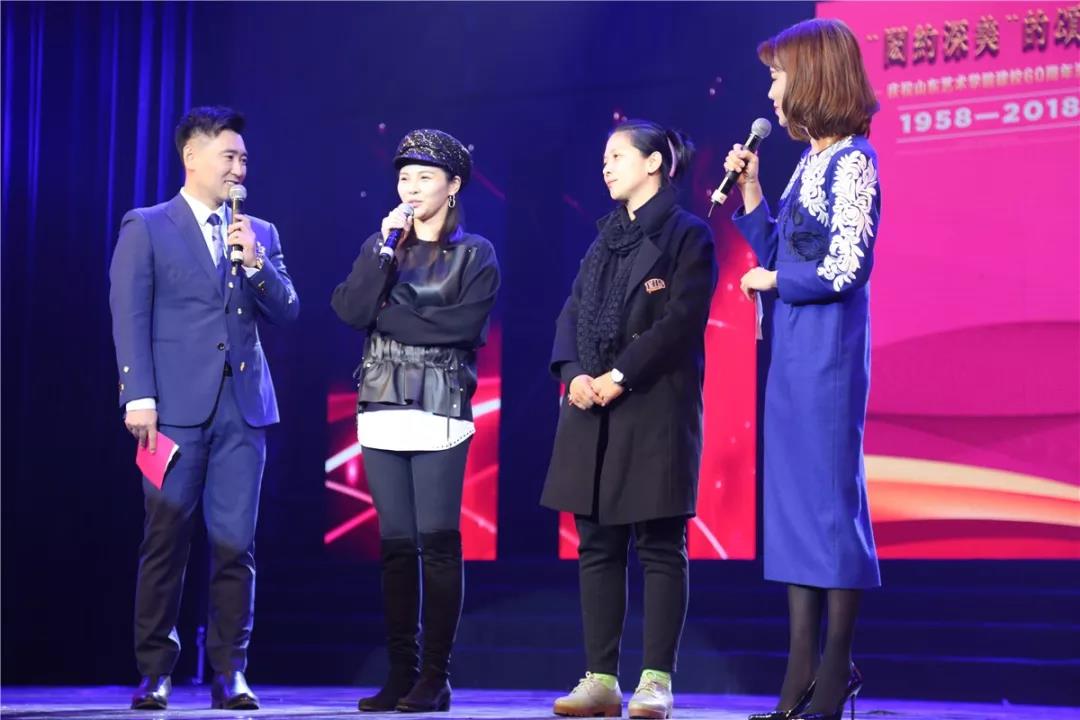 山东艺术学院党委书记马东骅、院长王力克为学校80岁以上的老教师、老职工代表颁发“山东艺术学院建校60周年荣誉纪念奖”,学生代表向获奖教职工代表献花。
