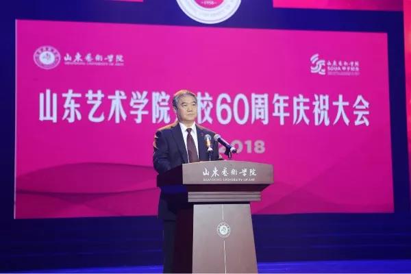 王力克指出,60年来,学校收获了一路芬芳,铺就了满天云锦,这得益于党和国家亲切关怀,得益于省委、省政府坚强领导,得益于海内外兄弟院校鼎力相助,得益于社会各界真诚关爱,得益于前辈先贤艰苦开拓,得益于历届班子励精图治,得益于广大校友无私奉献,得益于广大教职工矢志不渝的接续奋斗。历史不会忘记,时代不会忘记,山艺更不会忘记60年来为学校发展奋斗不息的前辈们,他代表学校向他们致以最崇高的敬意,向长期关心、支持学校的各级领导、各界朋友、兄弟院校、广大校友和全体教职员工致以最诚挚的谢意。王力克表示,站在新的起点上,学校将不忘初心,始终扎根齐鲁,辐射全国,奉献社会;始终融入地方,服务山东,协同发展;始终坚持为人民抒怀,为时代讴歌,为国家育才;始终坚持社会主义办学方向,以党的教育方针、文艺方针为指引,把山东艺术学院办成有底色、有温度、人民满意的艺术大学。山东艺术学院将不忘本来,始终以立德树人为根本任务,大力弘扬“闳约深美”的校训精神和“厚基础、重实践、强学术”的优良传统,充分发挥综合性办学优势,为国家培养更多德艺双馨、一专多能的优秀艺术人才,将山东艺术学院办成有特色、有厚度、人才辈出的艺术大学。他表示,山东艺术学院将不辱使命,坚持以习近平新时代中国特色社会主义思想为指导,深入贯彻落实党的十九大、全国教育大会精神和省委省政府的部署要求,以博士单位申建工作为牵引,以深化综合改革为动力,以党的建设为根本保证,加快实现内涵式发展,全力把山东艺术学院建成稳具实力、充满活力、富有魅力的现代化高水平艺术大学,以奋进之笔绘就无愧于山艺芳华、无愧于大家期待、无愧于伟大时代的崭新画卷。