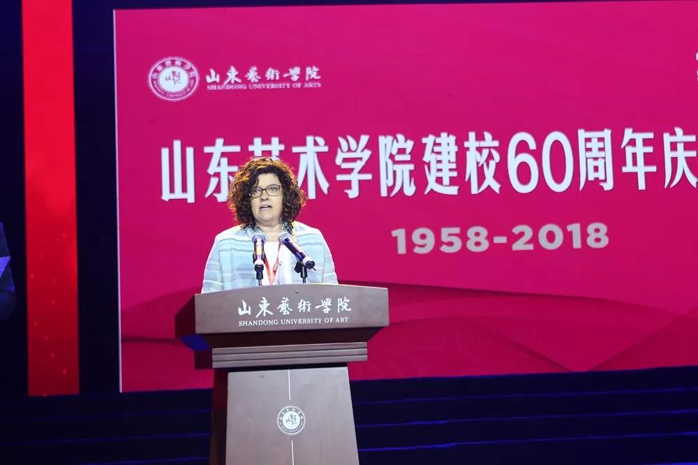 国外友好院校代表、澳大利亚格里菲斯大学副校长莎拉.托德在致词中向山东艺术学院60周年华诞表示祝贺。她指出,格里菲斯大学和山东艺术学院已经建立了20余年的合作关系,这是格里菲斯大学所坚持的国际化战略模式。她表示要加强两校的合作,祝福山东艺术学院取得更大的成就。