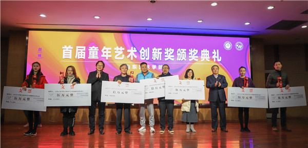 颁奖典礼上,山东艺术学院教育发展基金会秘书长、学校党办院办主任孔亮作首届童年艺术创新奖评选情况的说明。他讲到,依据《“童年艺术创新奖”评选办法》,首届童年艺术创新奖评审委员会7位专家在监督组的监督下,对申报参评、创作于2018年1月1日至2018年12月31日期间的17项作品(含集体项目7项,个人项目10项)进行了认真评选,评选程序规范严格,公正公平公开。最终,庆祝改革开放40周年“时代的温度”山东艺术学院建校60周年美术作品展、大型原创歌剧《檀香刑》获评重大项目,每个项目奖励10万元;纪录片《河水洋洋》、三人舞《海阳有个王大娘》和群舞《喜饽饽》《闯海人》《喜鹊衔梅》获评个人项目,每个项目奖励5万元。
