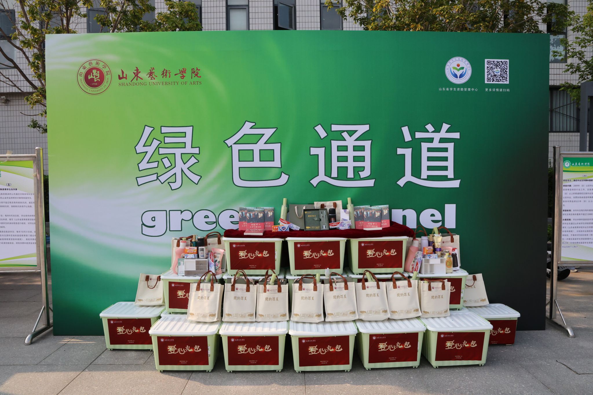 在校友广场上,学生资助管理中心暖心护航家庭经济困难学生顺利入学,特别设立了“绿色通道”,为助学贷款学生现场发放“爱心礼盒”和“爱心礼包”,使家庭经济困难学生在入学之初就感受到温度和关怀,护航他们开启精彩的大学旅程。心理健康教育中心现场为新生们发放了量身定做、精心设计了《萌新入学心理适应》和《心理咨询服务》手册,助力新生尽快适应大学生活。