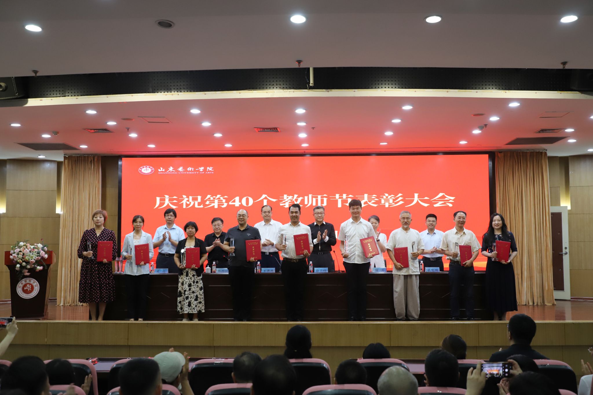 为庆祝第40个教师节,涵养高尚师德师风,表彰先进典型,凝聚强大师者力量,9月9日,学校在长清校区图书馆报告厅举行教师节表彰大会。党委书记王洪禹主持会议,院长徐青峰出席会议并讲话,党委副书记杨西国,党委委员、副院长荆雷,党委委员孔亮、孔宪坤出席大会。受表彰的教职工,全校正处级干部、教师代表、学生代表参加会议。