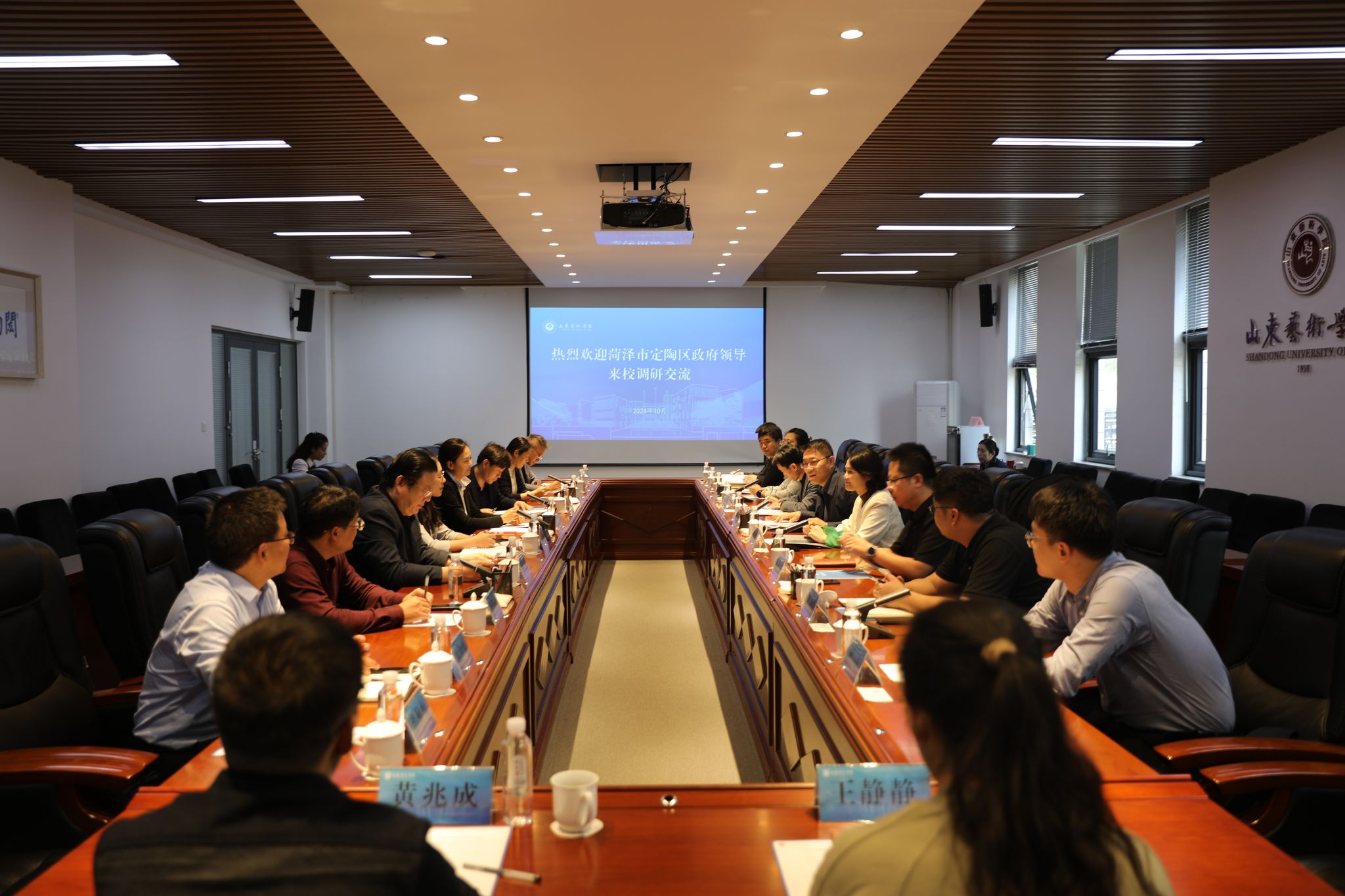 10月14日,菏泽市定陶区政府党组成员、副区长、区政府办党组书记、主任刘刚,区文化和旅游局党组书记、局长李茜等一行9人来我校座谈交流。学校党委书记王洪禹会见了刘刚一行,向定陶区党委政府对我校工作的支持表示感谢,并就有关工作做了深入交流。党委委员、副院长荆雷陪同会见。