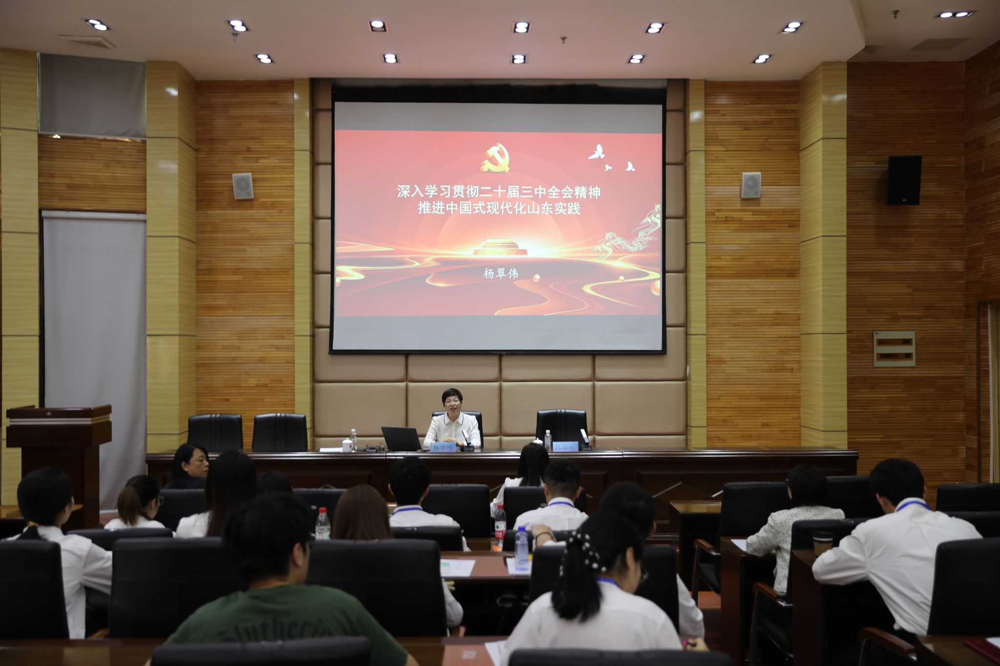 开班仪式后,济南市委党校(济南行政学院)杨翠伟教授应邀来我校为新入职教师作了题为《深入学习贯彻党的二十届三中全会精神,推进中国式现代化山东实践》的专题辅导报告。杨翠伟深入阐述了党的二十届三中全会的精神实质和丰富内涵,鼓励新入职教师以更加饱满的精神状态、更加扎实的工作作风,切实把学习成果转化为推动山东艺术学院高质量发展的具体行动,为谱写中国式现代化山东篇章贡献力量。