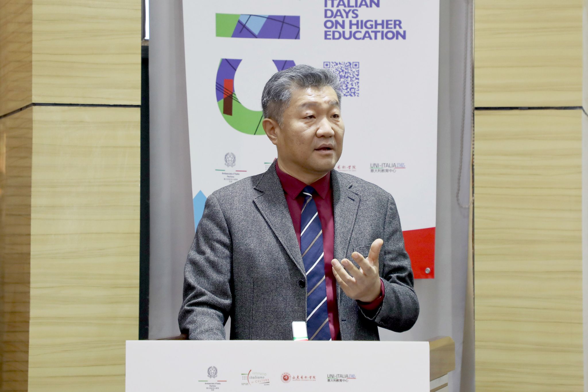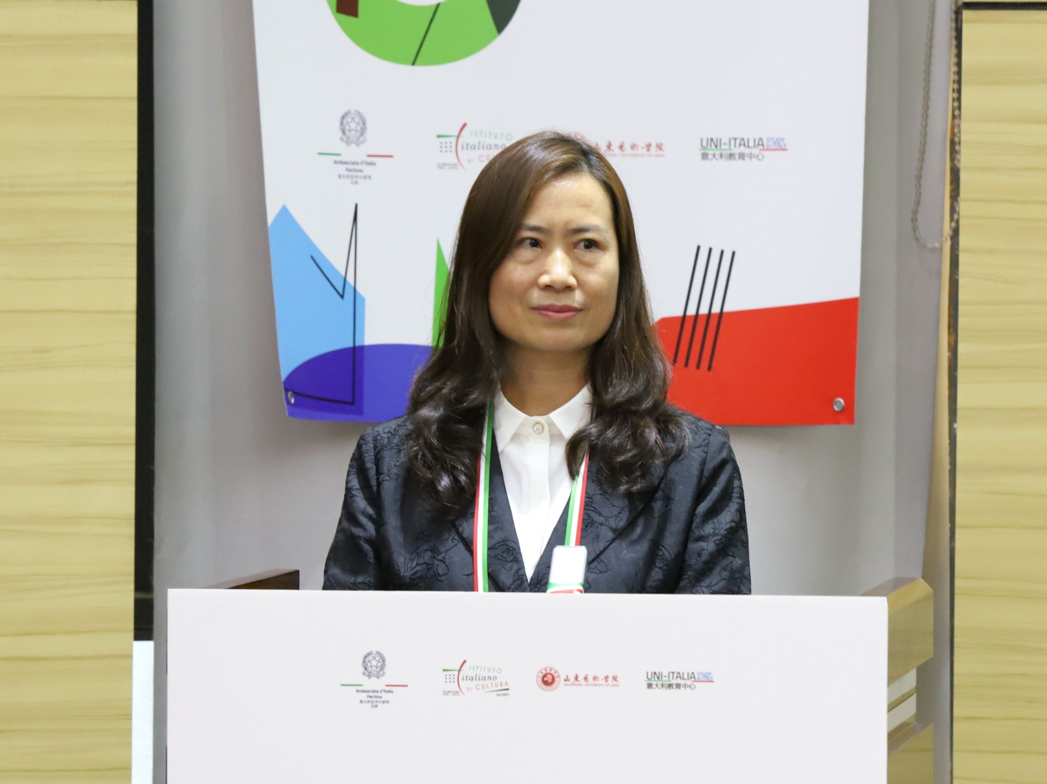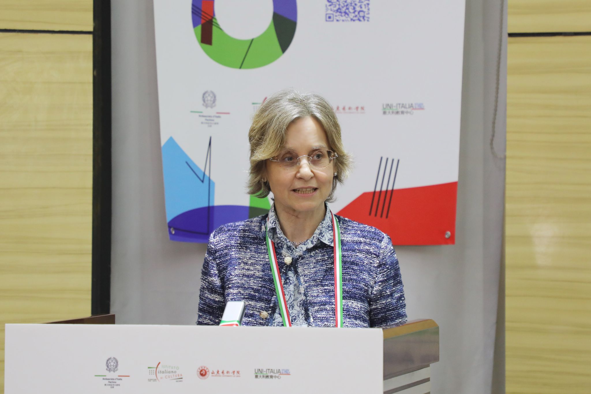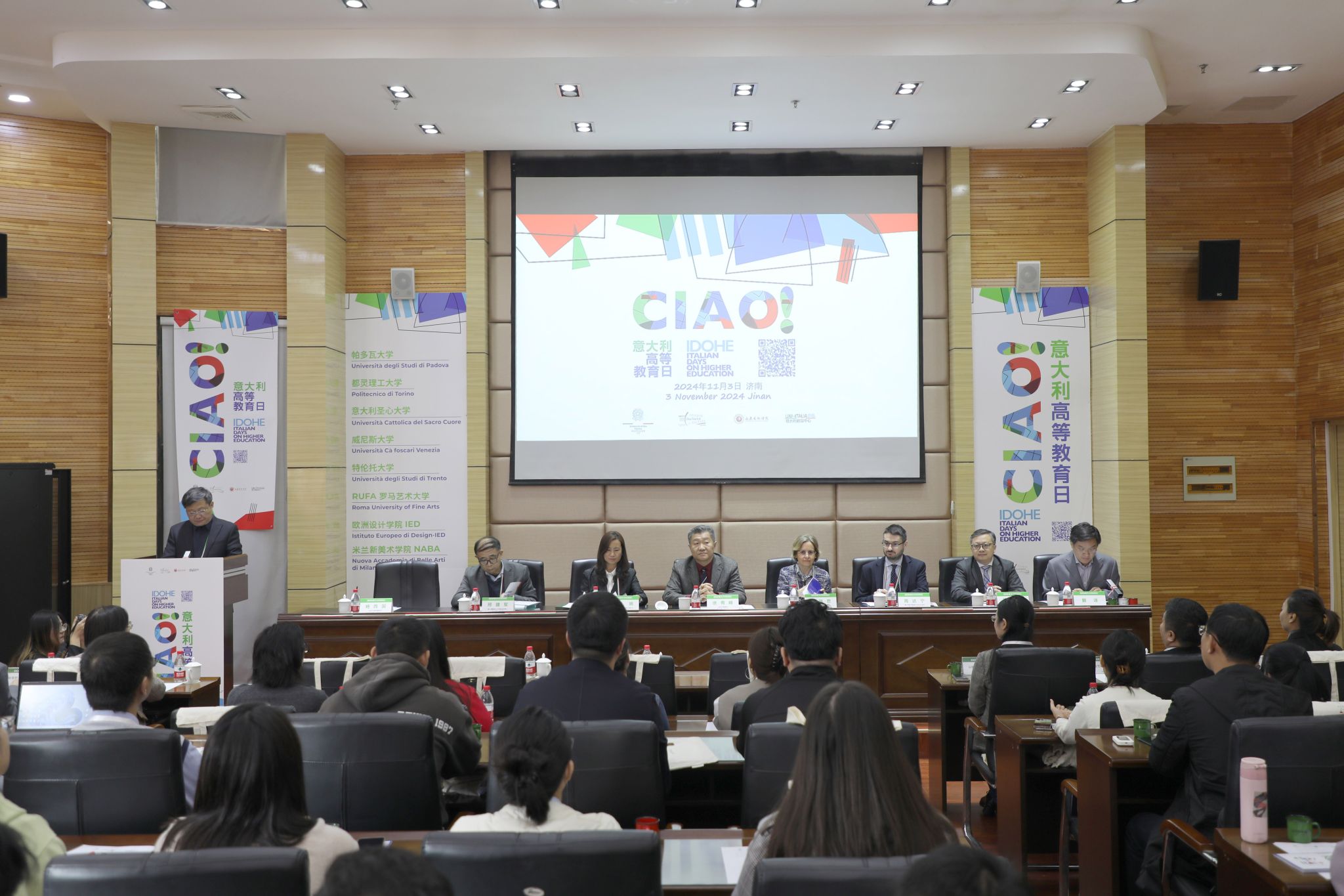 11月3日,2024年“意大利高等教育日(济南站)”活动在我校长清校区举行。意大利驻华使馆公使柯瑞思、教育部中外人文交流中心副主任夏娟、意大利驻华使馆文化处文化专员高达宁、意大利教育中心中国区负责人邢建军、教育部中外人文交流中心机制工作二处处长陈滔伟、省委外办欧洲处李梦如,山东艺术学院院长徐青峰、党委副书记杨西国出席活动。来自意大利的8所综合性大学和艺术院校相关负责人,学校相关职能部门负责人以及济南多所高校师生代表参加活动。