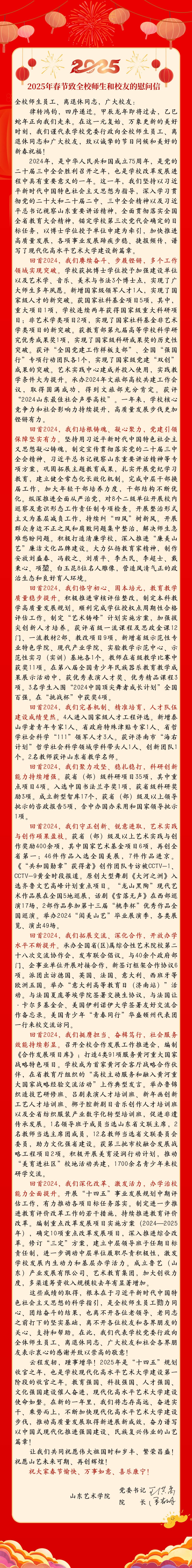 2025年春节致全校师?和校友的慰问信