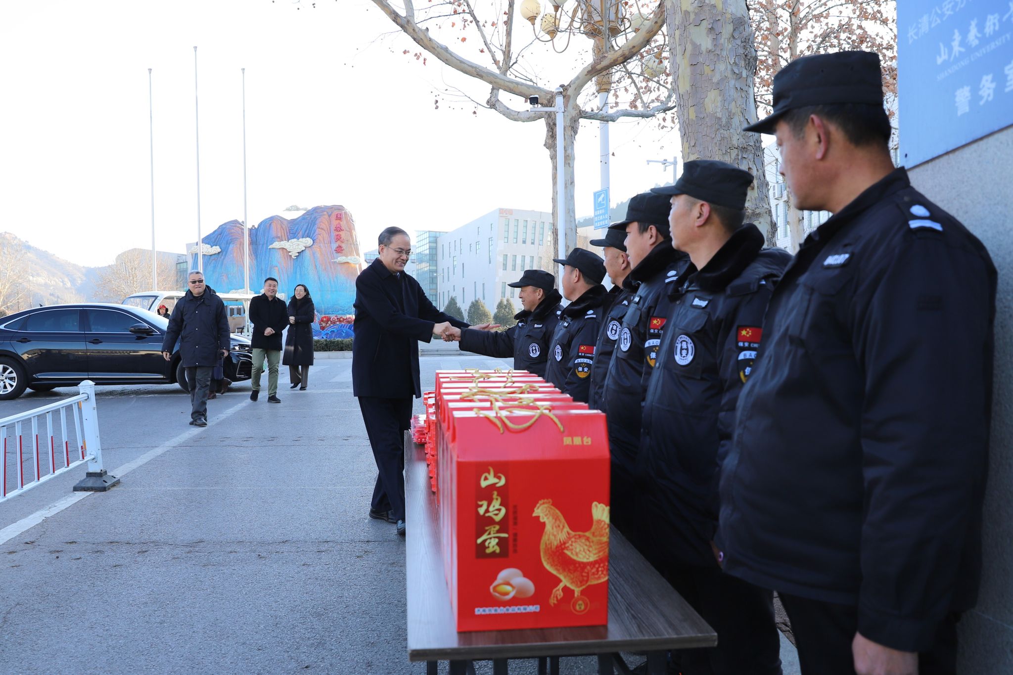 校领导分别走访慰问了长清校区校门口值勤室、办公楼值班室、学生公寓值班室和文东校区校门口值班室、综合楼值班室、医务室、学生公寓值班室等。走访过程中,王洪禹同坚守岗位的干部职工亲切握手,悉心询问大家的工作、生活等情况,对他们坚守岗位、辛勤工作的精神给予高度赞扬和诚挚感谢,向大家送上节日祝福,勉励大家保重身体,全力以赴做好各项服务保障工作,确保全校教职工度过一个安定、和谐、美满的春节。