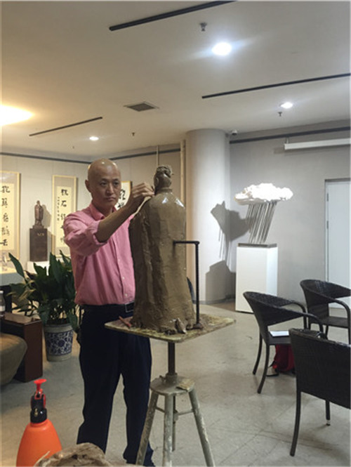 李怀杰在创作孔子雕塑像