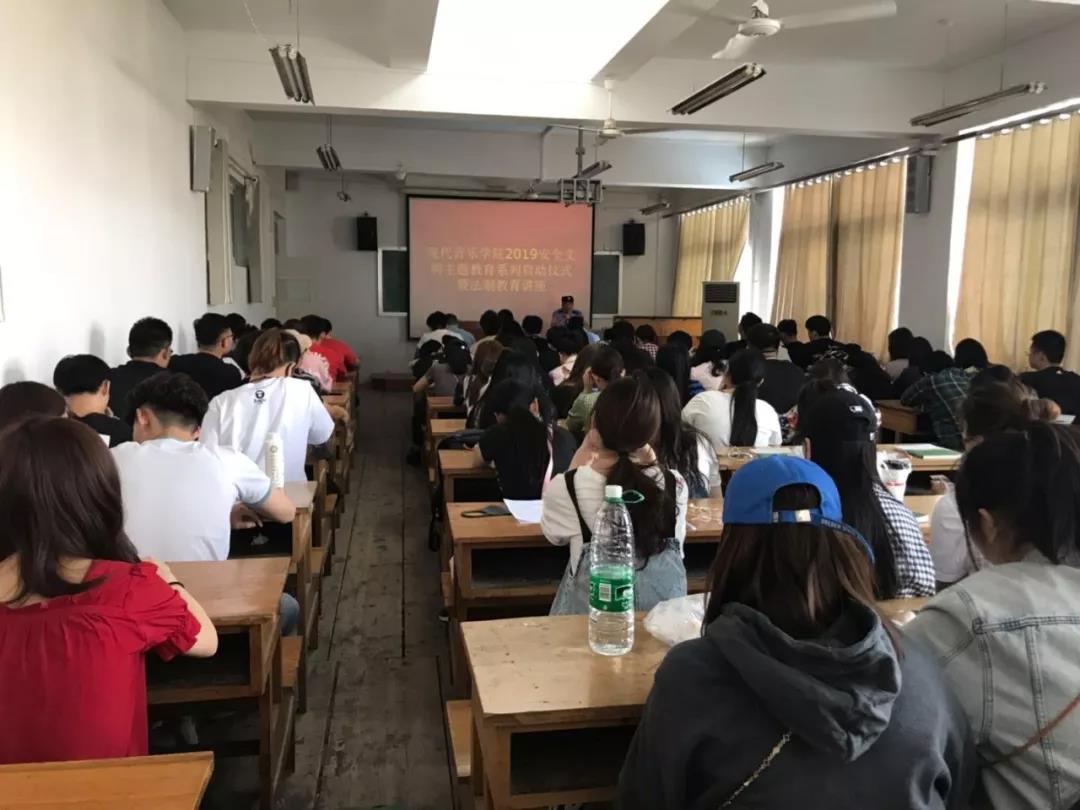 5月21日,现代音乐学院“提高安全意识 共建文明校园”2019安全文明主题教育系列活动启动仪式暨法制教育讲座在文东校区举办。现代音乐学院师生共150余人参加活动。