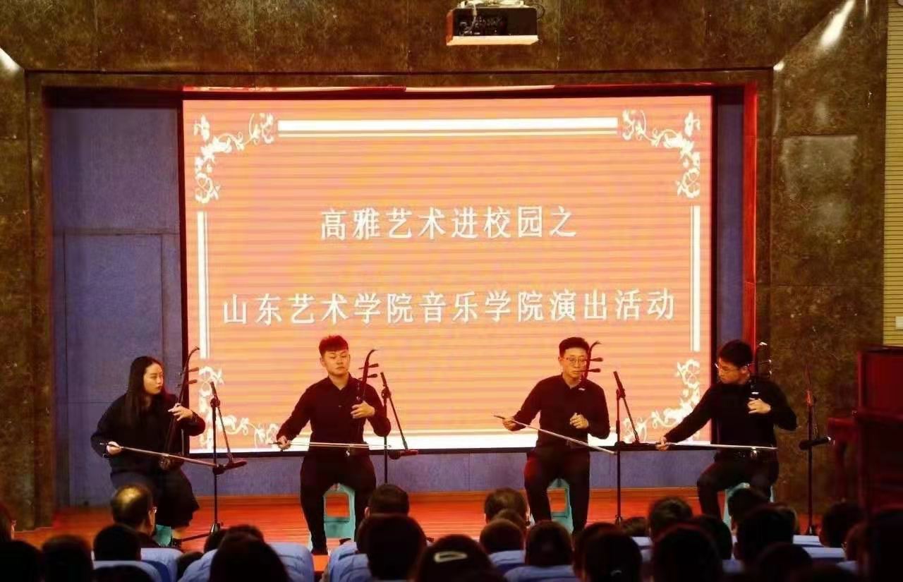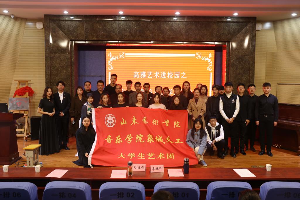 揭牌仪式后,“泉城义工”大学生艺术团的同学们为在场师生带来了一场精彩的演出,汇集了声乐、管乐、民乐、钢琴等的独唱、独奏与合唱、合奏节目,赢得了热烈掌声和广泛好评。演出在台上台下师生合唱《我和我的祖国》的歌声中结束。