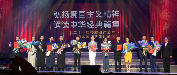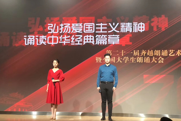 11月22日,第21届齐越朗诵艺术节暨全国大学生朗诵大会在中国传媒大学落下帷幕。我校戏剧学院2017级播音与主持艺术方向研究生尉伟男朗诵的作品《那支钢笔》荣获二等奖;2018级播音与主持艺术专业学生曾妮、孙啟翔朗诵的作品《雕像?红杜鹃》荣获优秀作品奖,山东艺术学院荣获优秀组织奖。