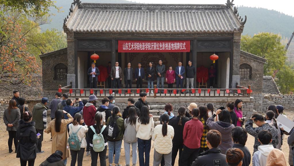 10月30日,电影学院“专业教学与创作基地”“爱国主义教育与社会实践基地”挂牌仪式在沂蒙红色影视基地举行。临沂大学综合艺术馆馆长任世忠,沂南县文化和旅游局党组成员、副局长刘长暖,沂南县马牧池乡乡长王孝强,山东广汇集团总裁李熙鹏,电影学院党政负责人、教师及学生代表参加活动。仪式由山东沂蒙红色文化产业有限公司总经理唐泽海主持。