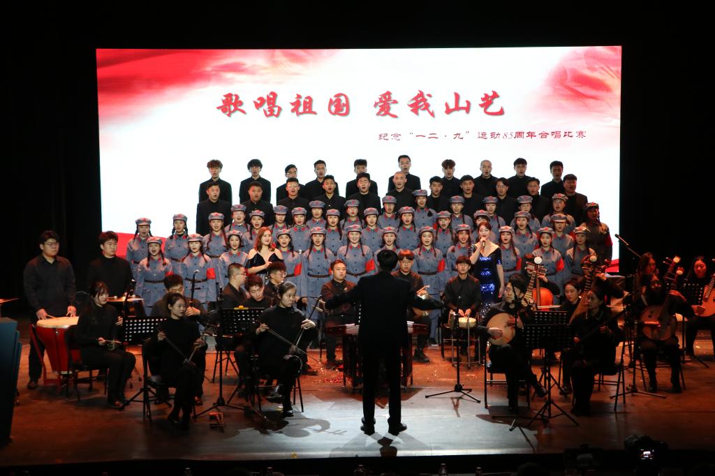为加强爱国主义教育,筑牢理想信念,培育和践行社会主义核心价值观,激发我校学子“学在山艺,创造艺术人生”的奋斗热情,12月7日晚,由校团委主办,职业教育学院承办的“歌唱祖国、爱我山艺”——纪念“一二?九”运动85周年合唱比赛在长清校区圆形剧场举行。我校学生在现场或通过线上直播的方式观看了比赛。