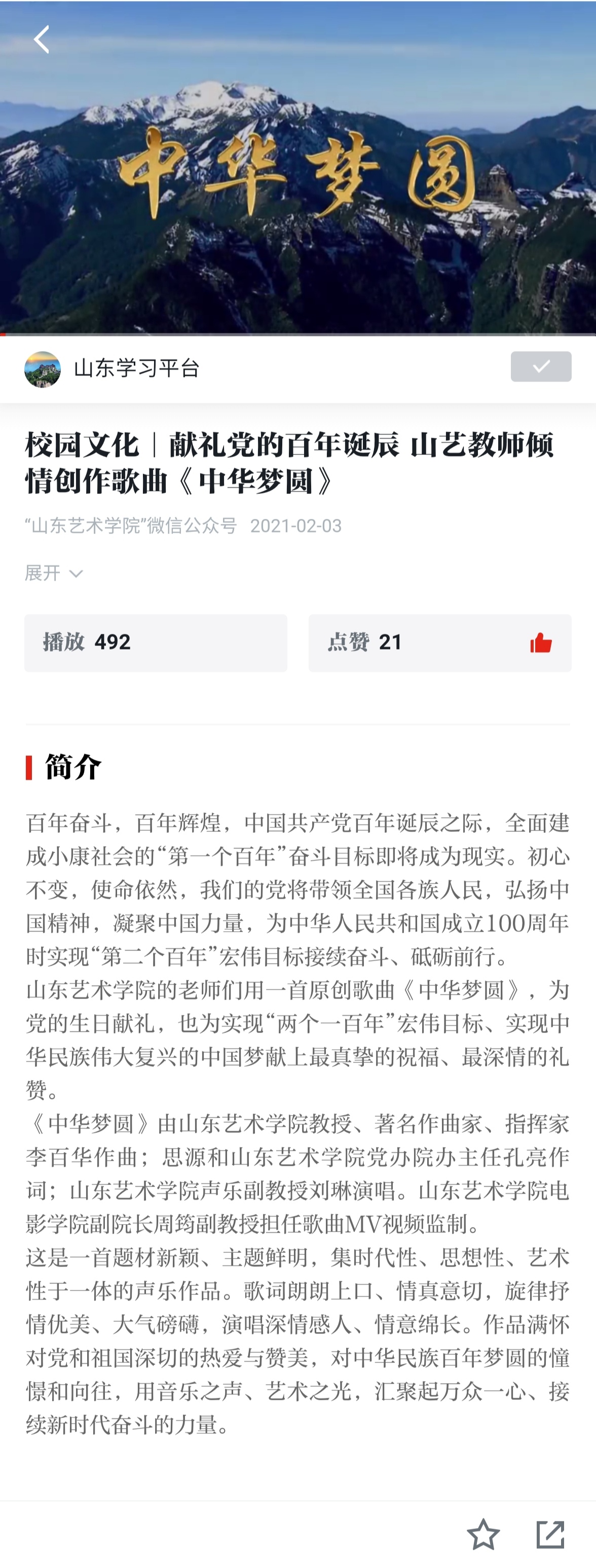 山东艺术学院的老师们用一首原创歌曲《中华梦圆》,为党的生日献礼,也为实现“两个一百年”宏伟目标、实现中华民族伟大复兴的中国梦献上最真挚的祝福、最深情的礼赞。