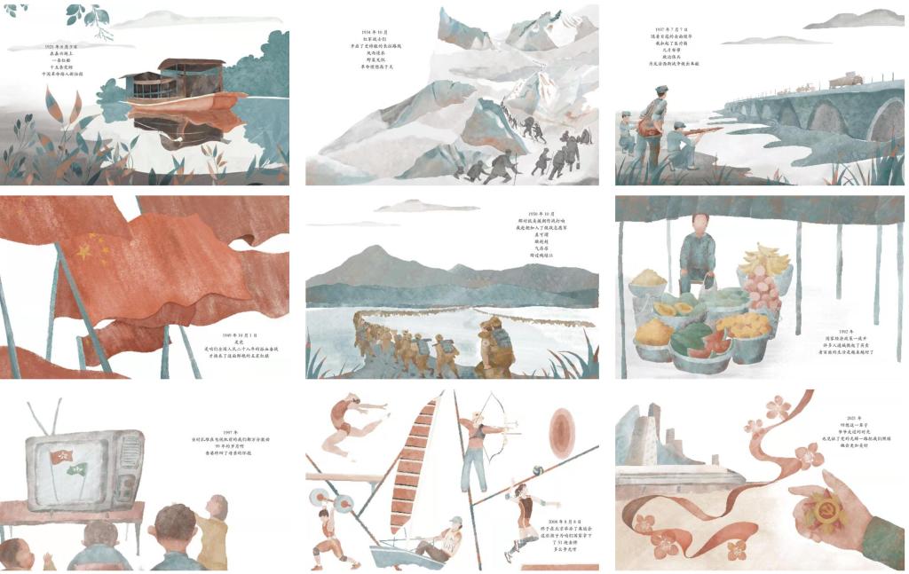 二等奖 《万里长征》《记忆》《井冈山红旗飘扬》《奋斗百年路,启航新征程》《微山湖秘密交通线》