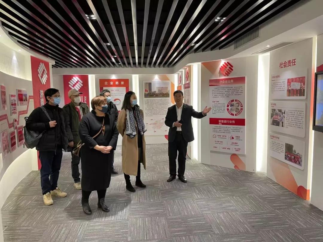在工作人员引导下,一行人参观了浙商银行济南分行党建活动室、展厅、美术馆、碑帖博物馆。双方围绕基层党组织活动开展,“三会一课”制度执行,党建与业务协同并进、互动开展等方面作了详细交流和讨论。