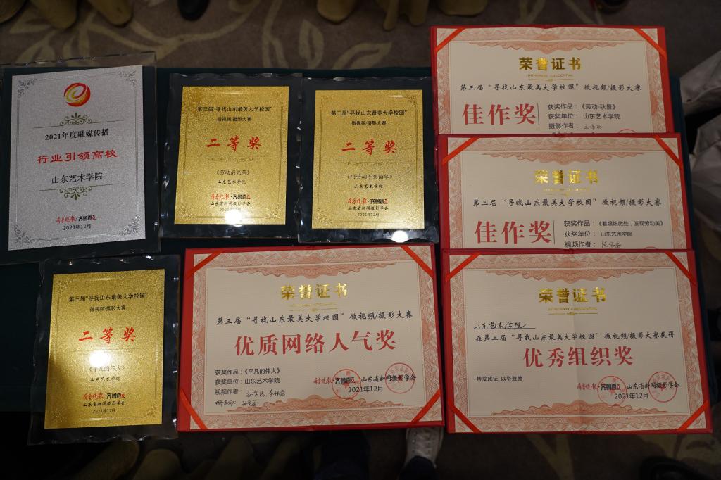 “融媒传播-行业引领高校”奖由齐鲁晚报?齐鲁壹点根据各高校2021年在各领域的大数据分析评出,共有31所高校入选。齐鲁晚报?齐鲁壹点第三届“寻找山东最美大学校园”微视频/摄影大赛,以教育部2020年7月印发的《大中小学劳动教育指导纲要(试行)》为背景,主题定位“爱劳动”,旨在呈现我省高校在劳动教育方面所作的探索,引导大学生强化责任担当意识,以劳动教育实现树德、增智、强体、育美的目的。大赛组委会共收到来自全省61所高校的近千件作品。我校大学生记者团刘昊天、余志茹的《用劳动不负韶华》获微视频作品二等奖和优质网络人气奖,传媒学院孙文洁、李保蓉的《平凡的伟大》获微视频作品二等奖和优质网络人气奖,大学生记者团陈绍禹的《着眼细微处,发现劳动美》获微视频作品佳作奖。大学生记者团张景瑜的《劳动最光荣》获摄影作品二等奖,王培羽的《劳动秋景》获摄影作品佳作奖。