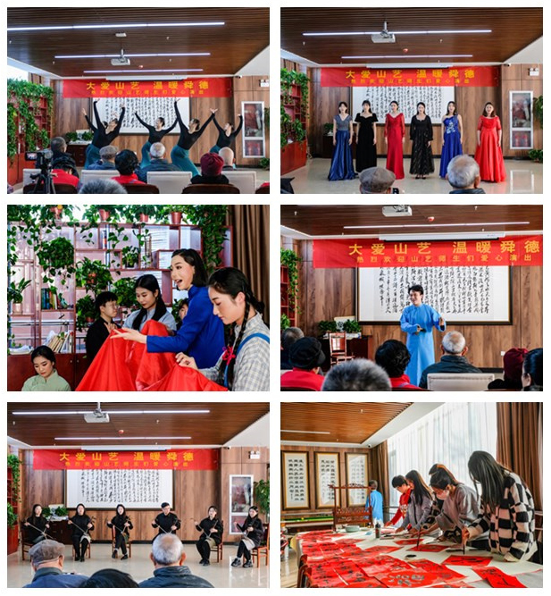 为扎实推进党史学习教育,深入开展“我为群众办实事”实践活动,12月18日,组织部统战部团委党支部、学生处党支部走进济南舜德护理院联合开展“大爱山艺 温暖舜德”主题党日活动,党委委员苏茂兴出席活动,两个党支部全体党员及部分学生志愿者参加活动。